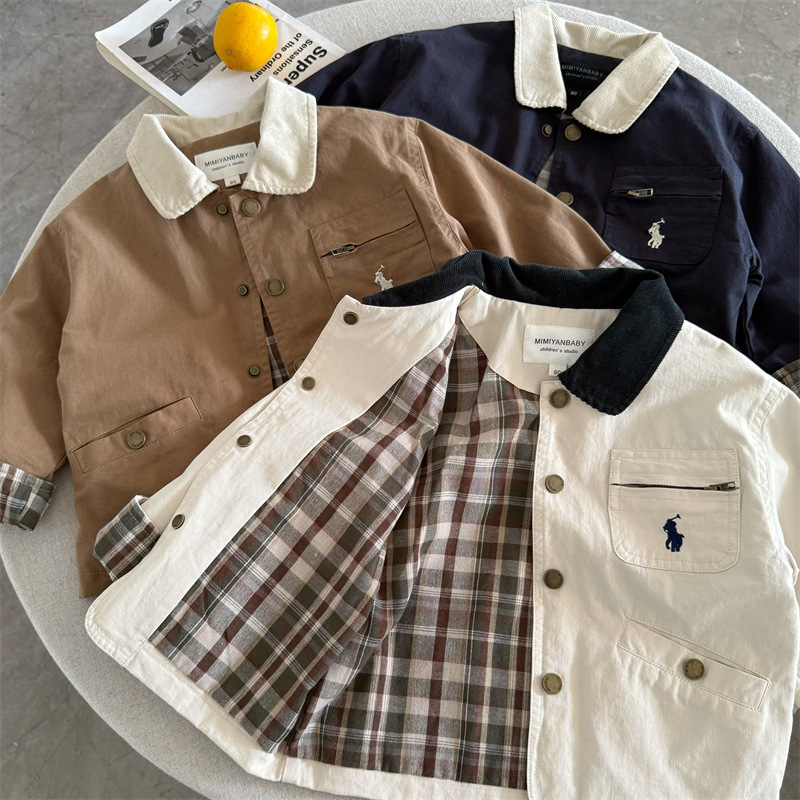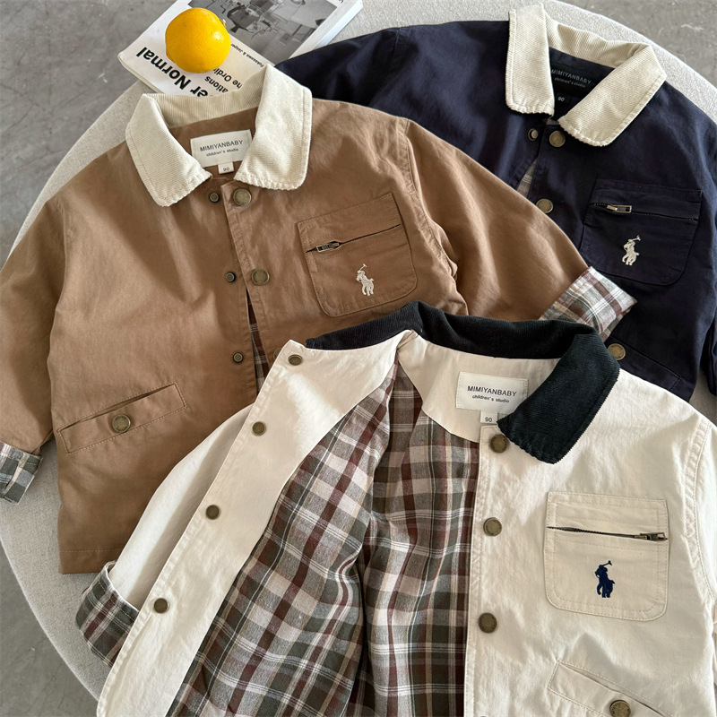 2025년 가을 신상 아동 자켓, 남아 여아 자수 라펠 자켓, 유아용 만능 재킷, 트렌디스토어 가기