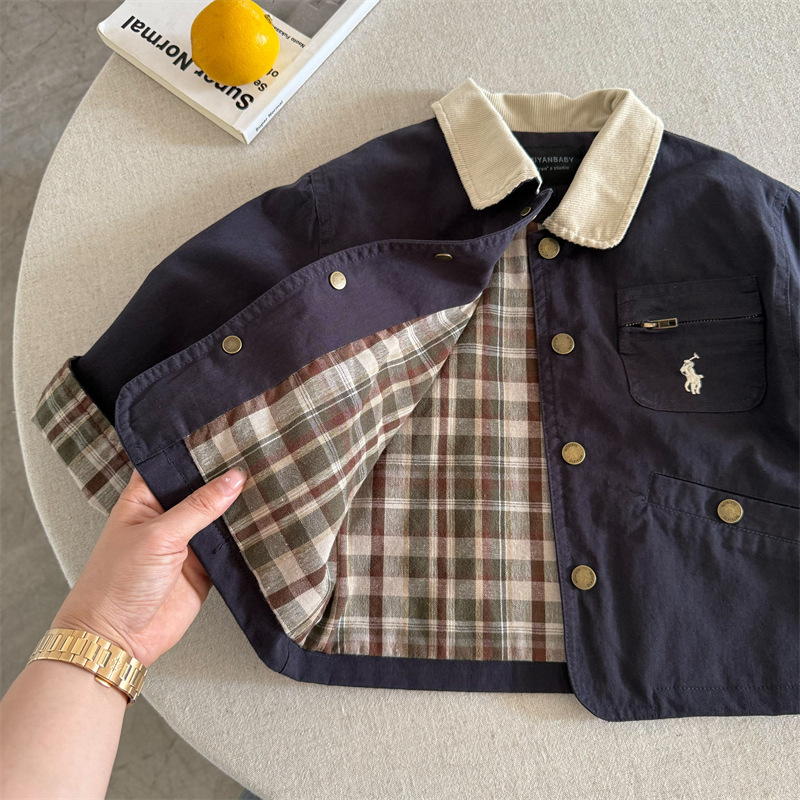 2025년 가을 신상 아동 자켓, 남아 여아 자수 라펠 자켓, 유아용 만능 재킷, 트렌디