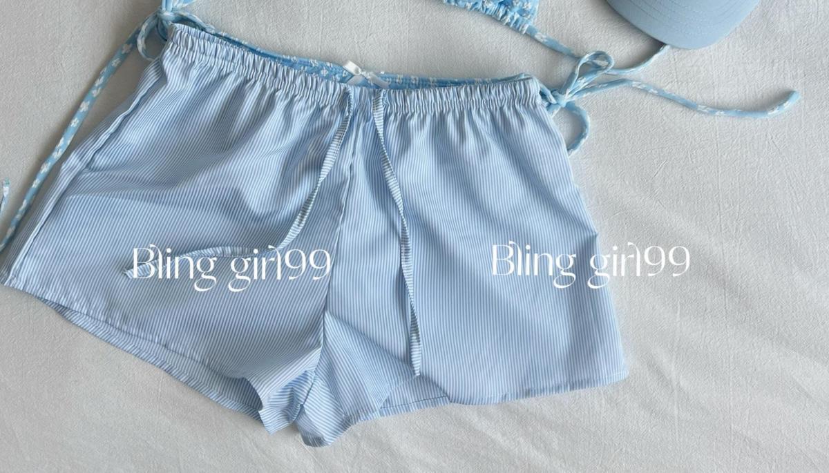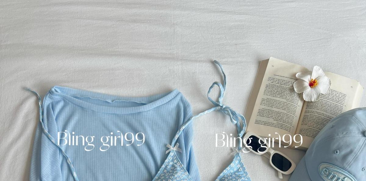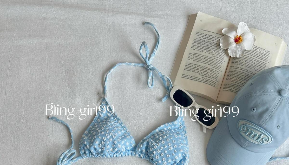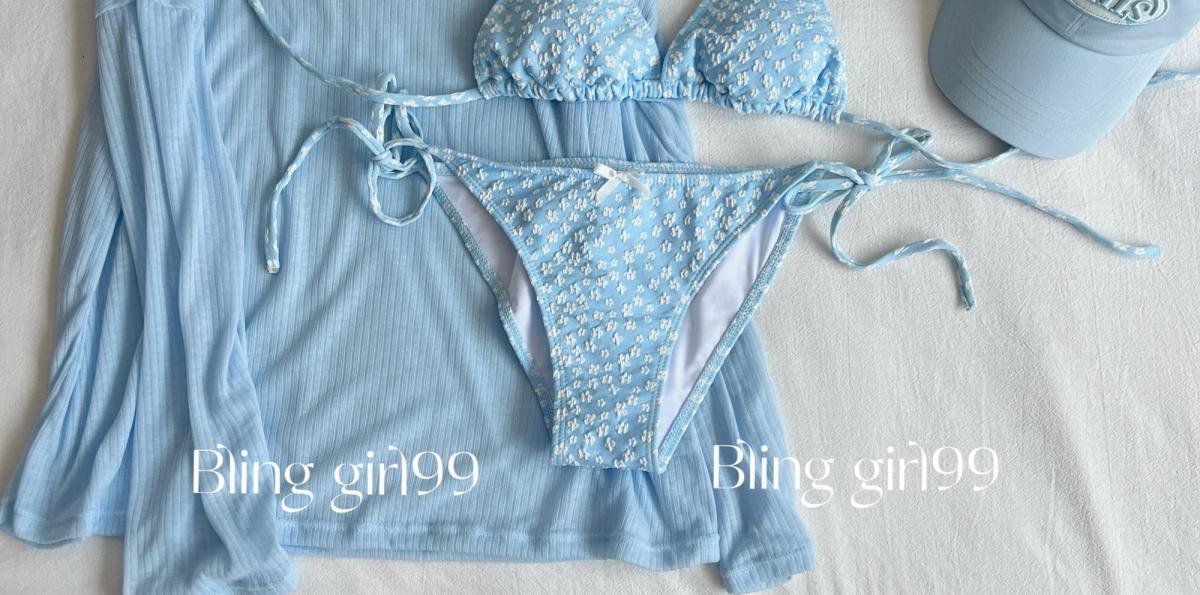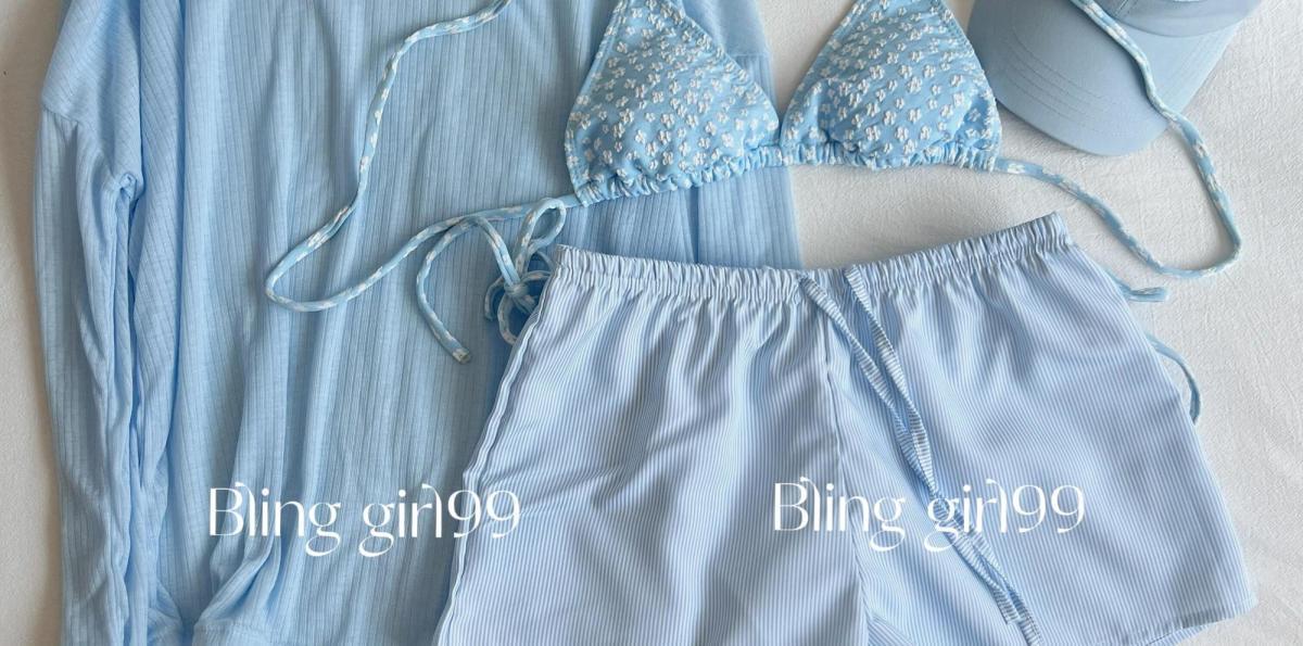 • 블루 비키니 + 블루 비치 반바지 + 블루 커버업 4종 세트