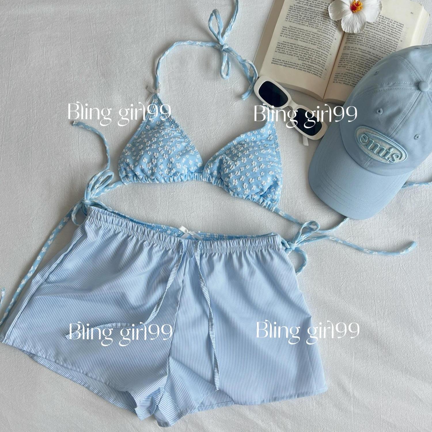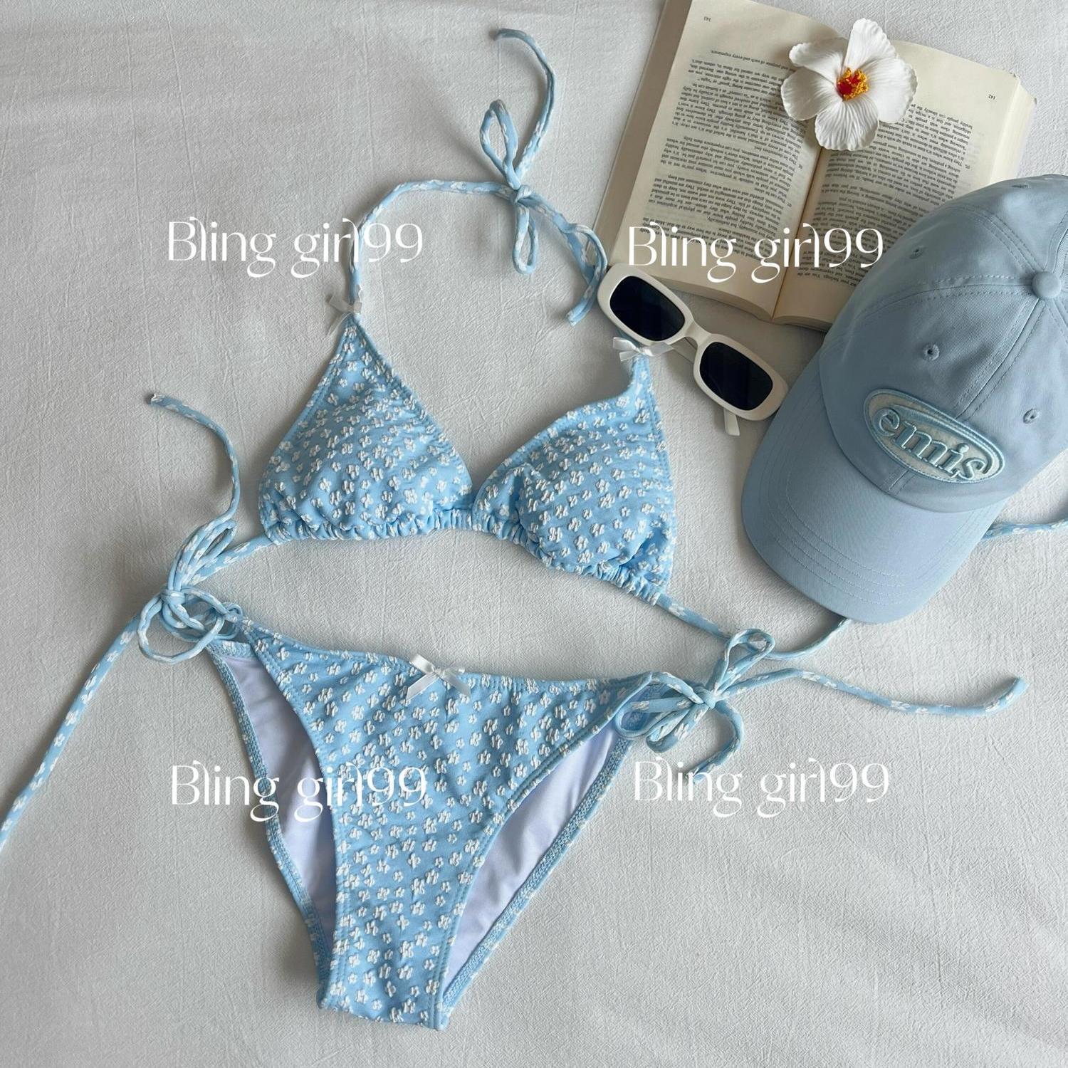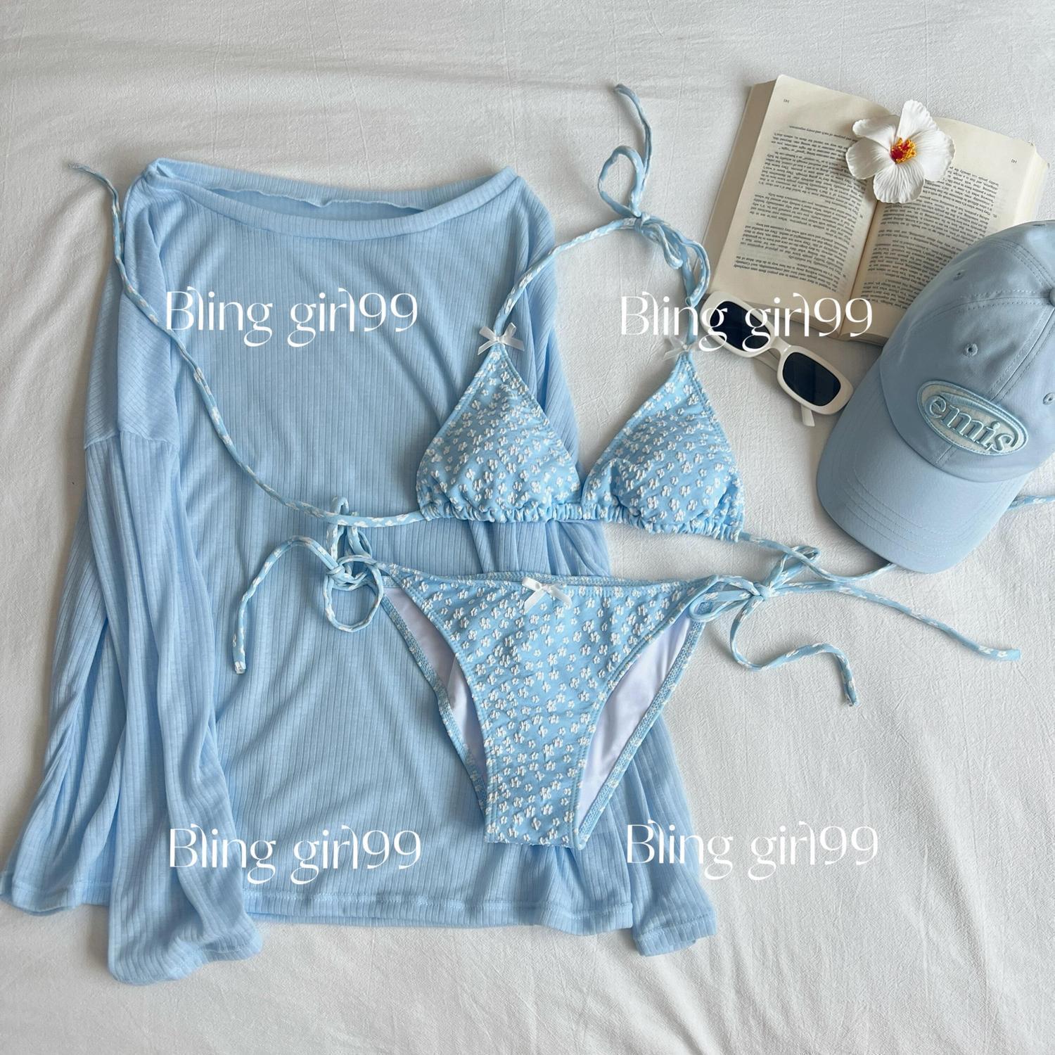 파란색 꽃무늬 달콤한 순수한 욕망 스타일 휴가 비키니 수영복 섬 휴가 해변 자외선 차단제 커버 섹시한 새로운 스타일