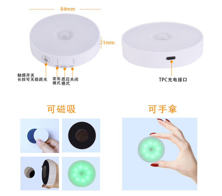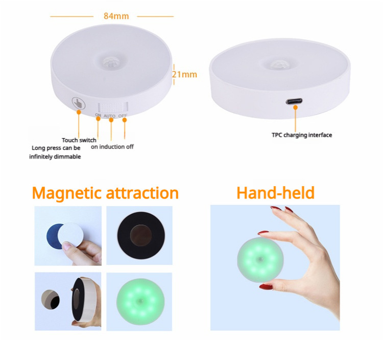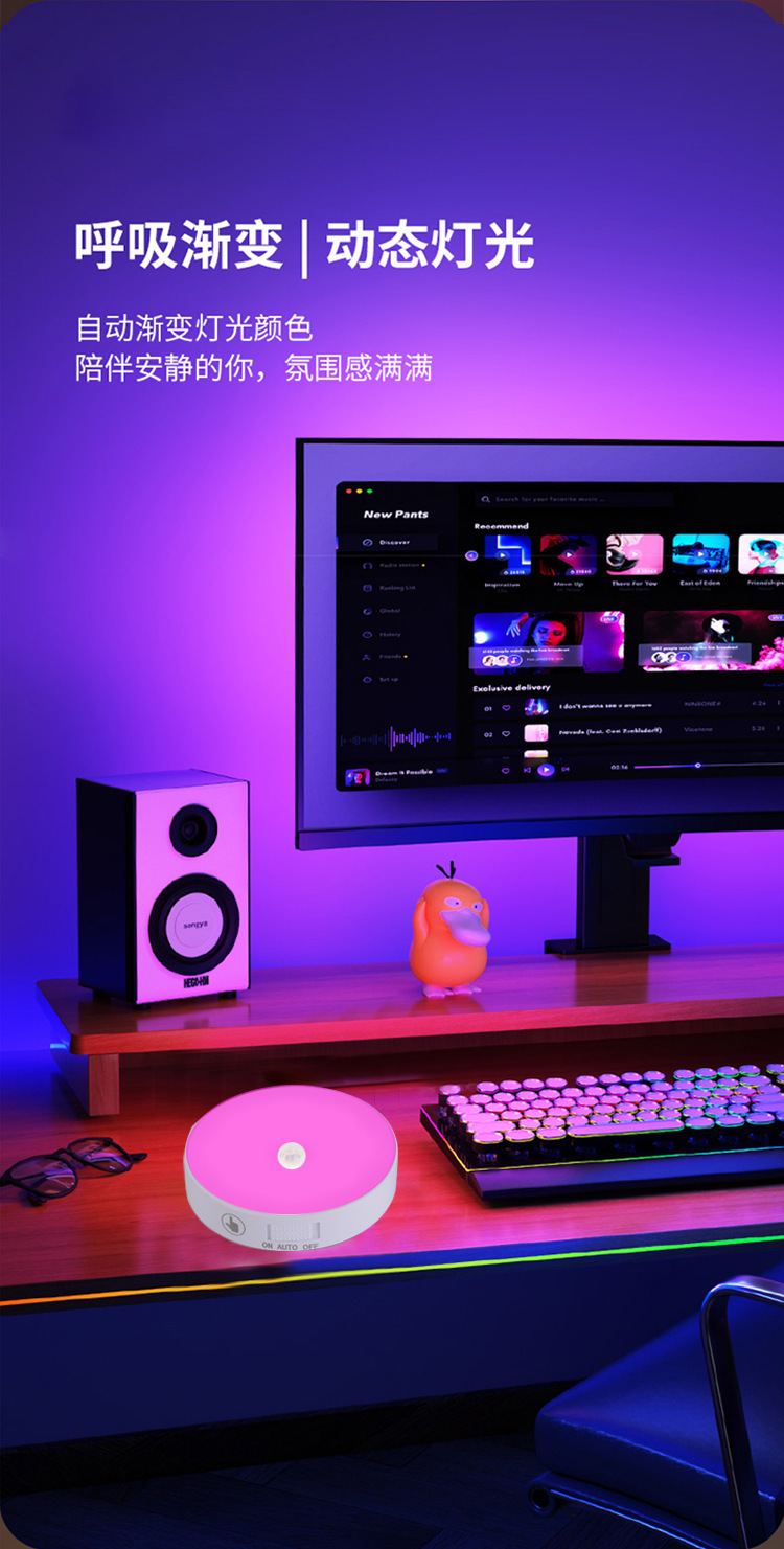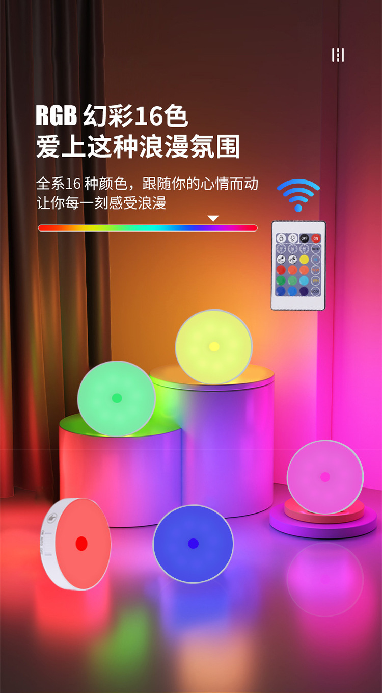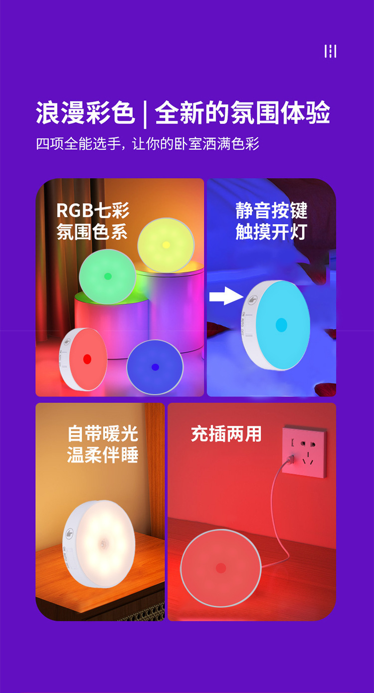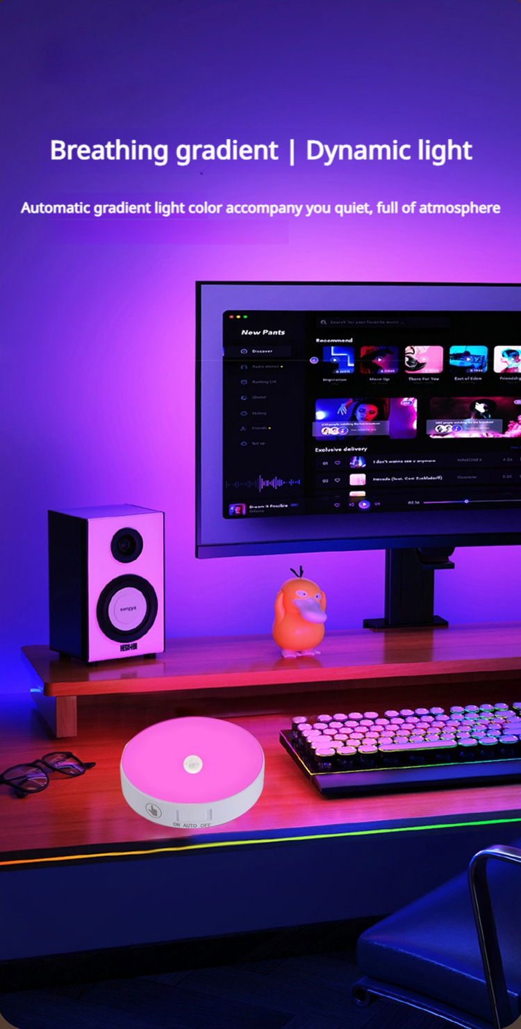• 국경 간 인체 지능형 유도 원격 제어 터치 충전 야간 조명 무선 디밍 침대 옆 RGB 분위기 아이스 하키 램프