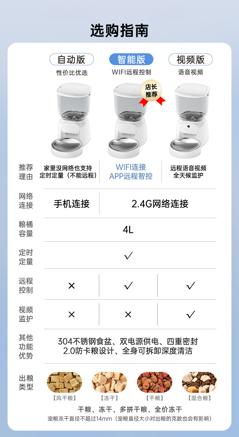 • 자동 버전 + 스테인리스 스틸 식품통 포함 [인터넷 필요 없음, 시간 제한 및 정량]