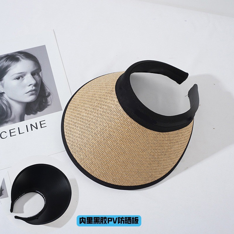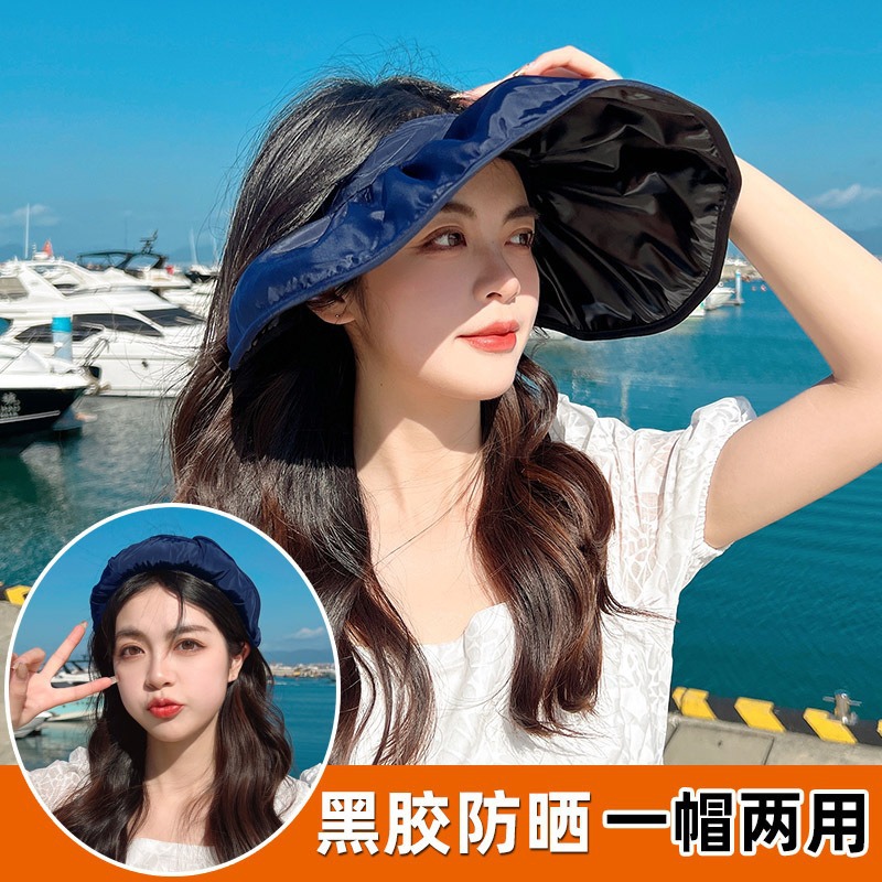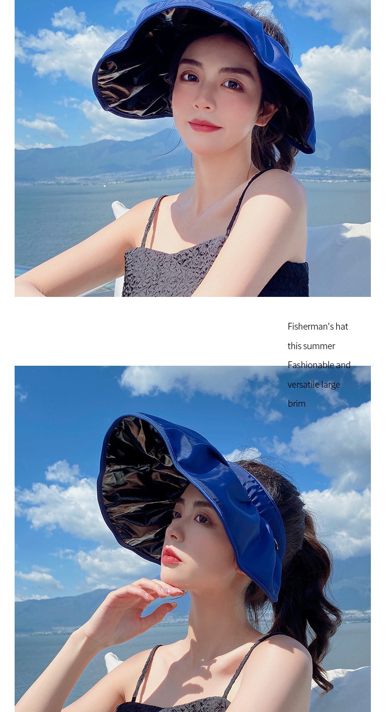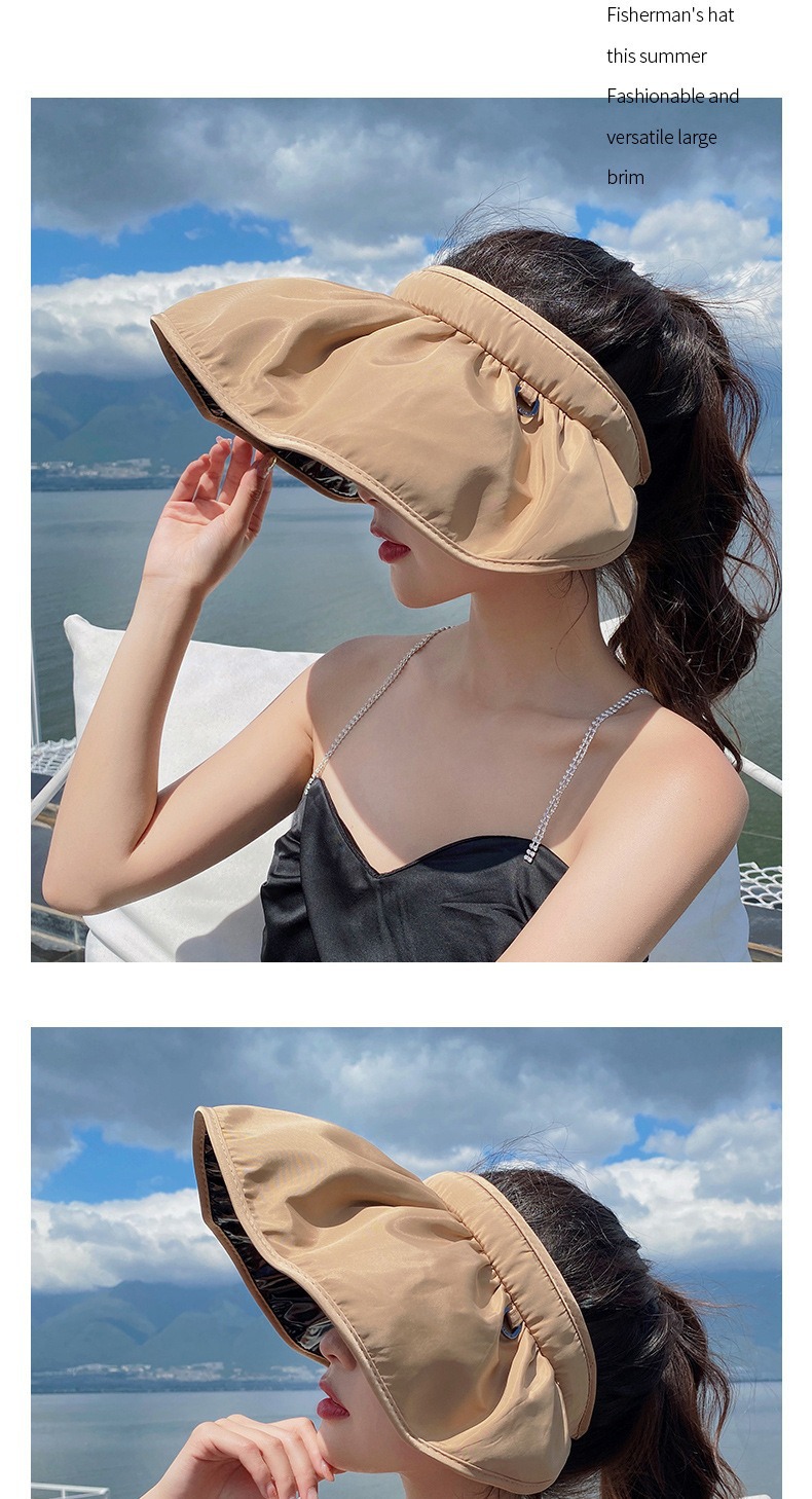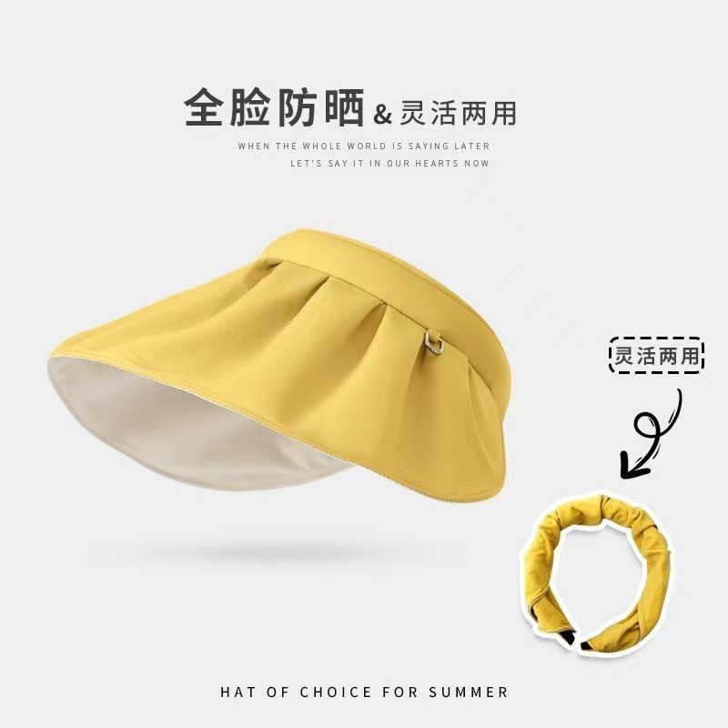여성용 둘레가 큰 챙이 있는 자외선 차단 모자, 여름용 자외선 차단, 빈 상단 디자인, 머리띠로 얼굴을 가리기 위한 접이식 쉘 모자스토어 가기