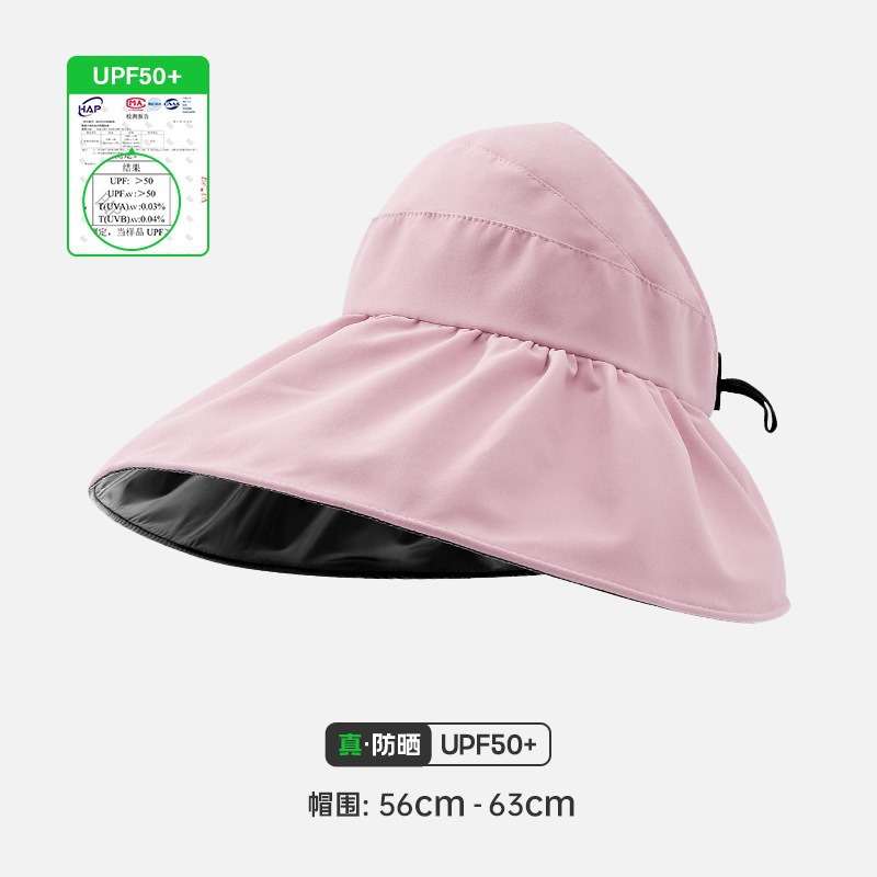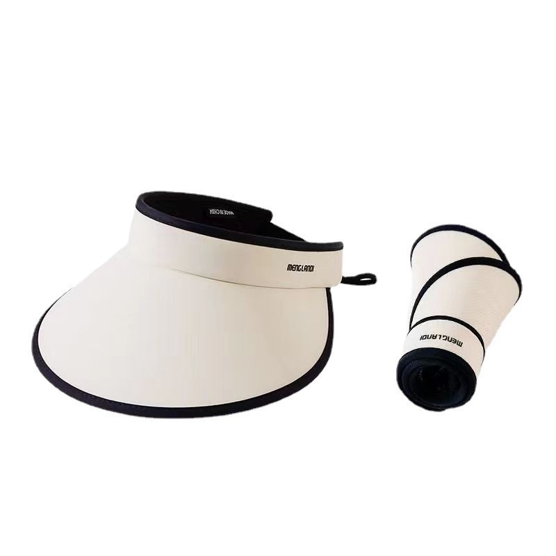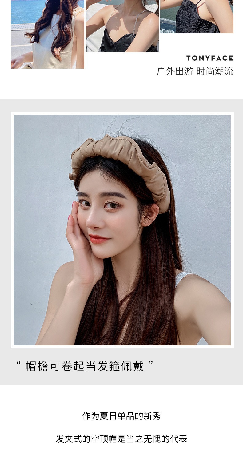 여성용 둘레가 큰 챙이 있는 자외선 차단 모자, 여름용 자외선 차단, 빈 상단 디자인, 머리띠로 얼굴을 가리기 위한 접이식 쉘 모자