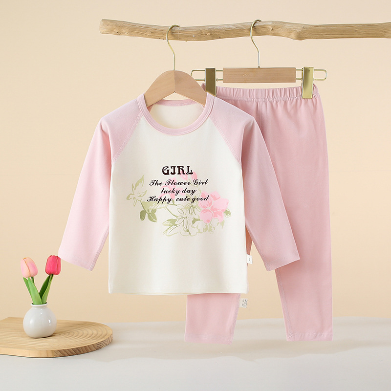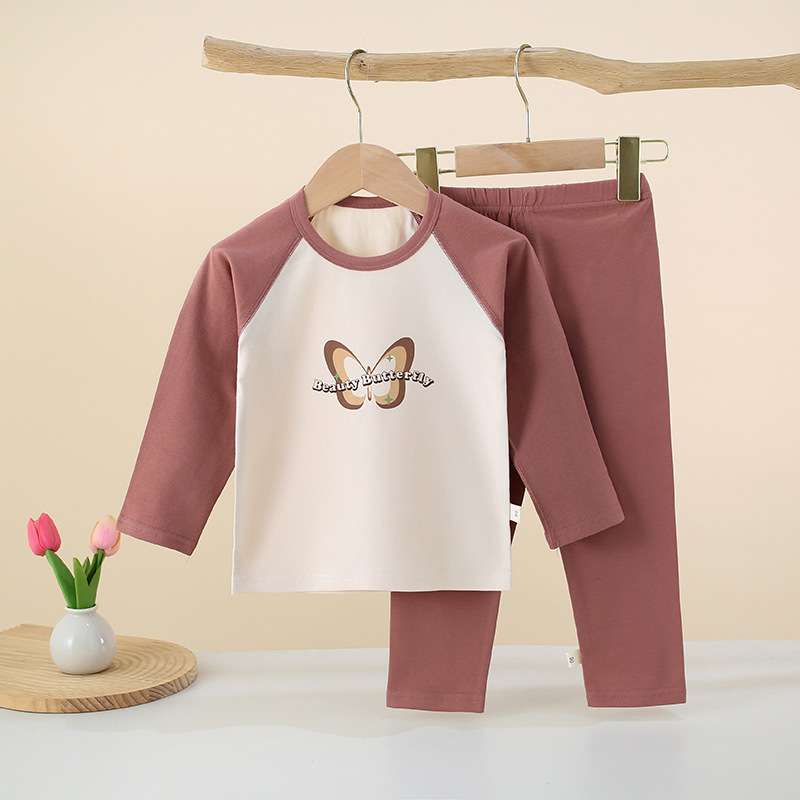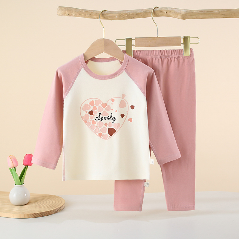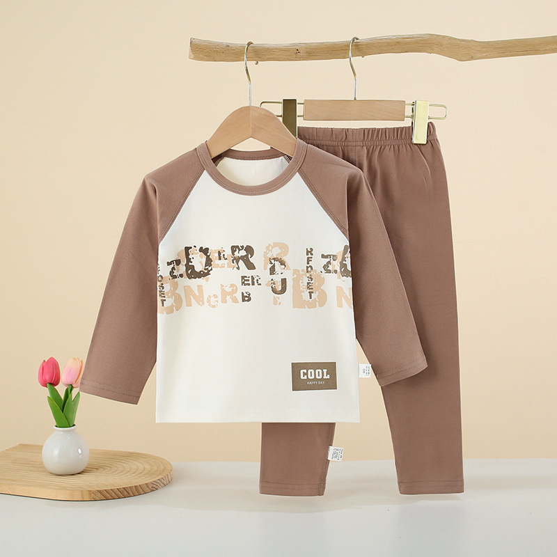 아동 속옷 세트 래글런 스타일 순면 소년 소녀 가을 옷과 긴 바지 아기 봄, 가을 옷 중대형 어린이 겨울