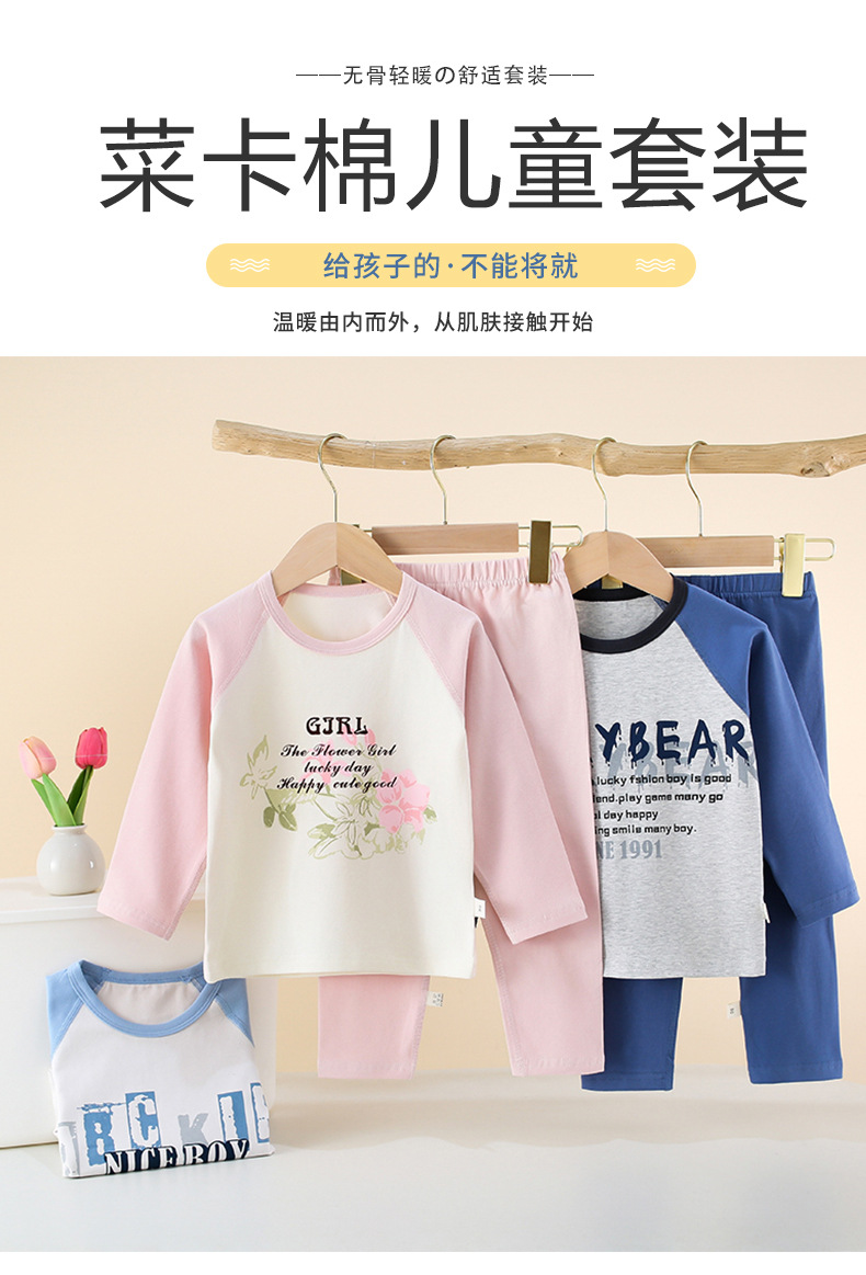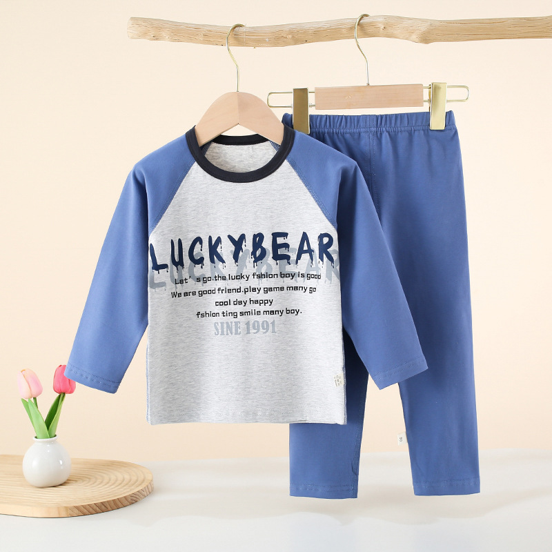 아동 속옷 세트 래글런 스타일 순면 소년 소녀 가을 옷과 긴 바지 아기 봄, 가을 옷 중대형 어린이 겨울스토어 가기
