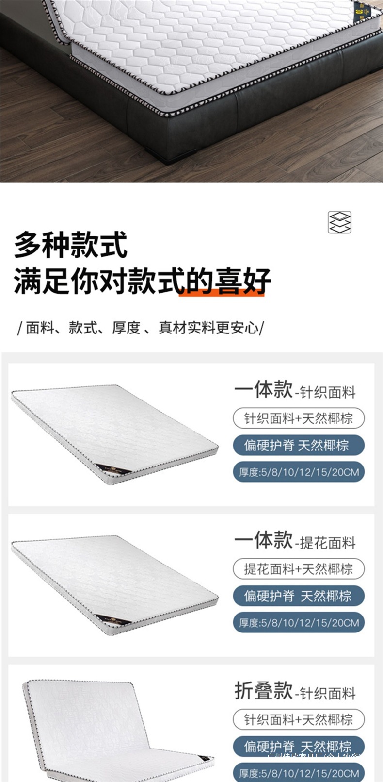 • 일체형 모델, 두께 5cm [3CM 브라운 코어 포함], 업그레이드된 자카드 옵션