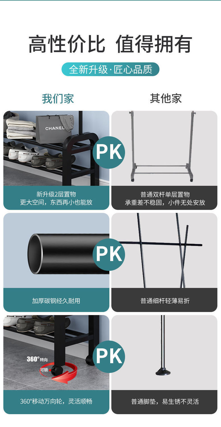 • 초대형 굵은 검정색 3칸 코트 걸이 + 바퀴 ★