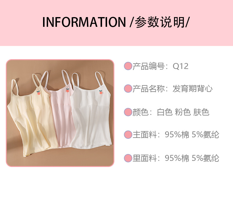 여아 속옷, 초등학생, 중학생, 여아 브라, 아동용 가슴 감싸는 면조끼, 여아 튜브탑
