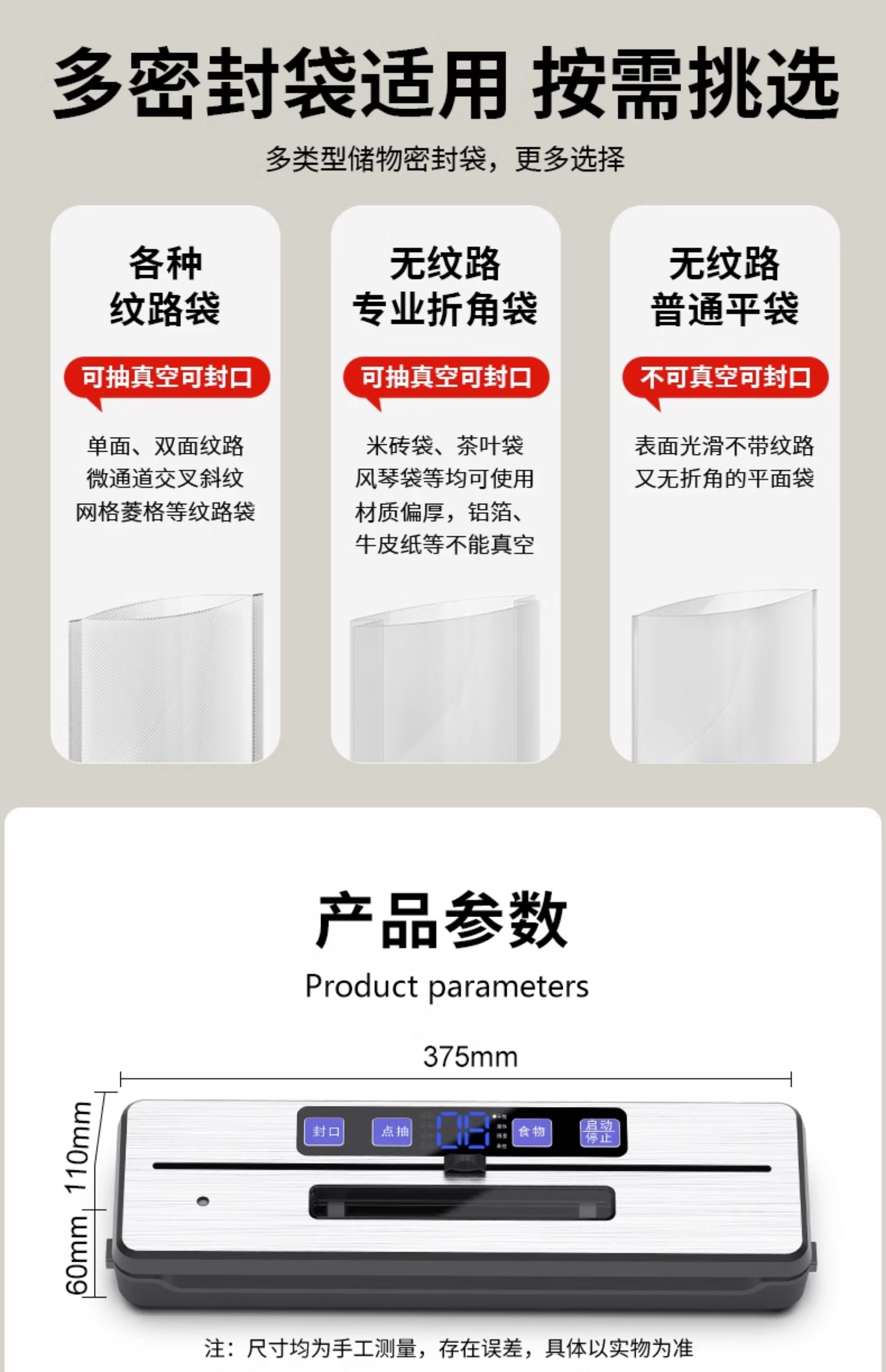 • 패키지 3: 표준 + 20x25/20x30/25x30 진공백 각 50개(20x30cm 진공백 50개 포함)
