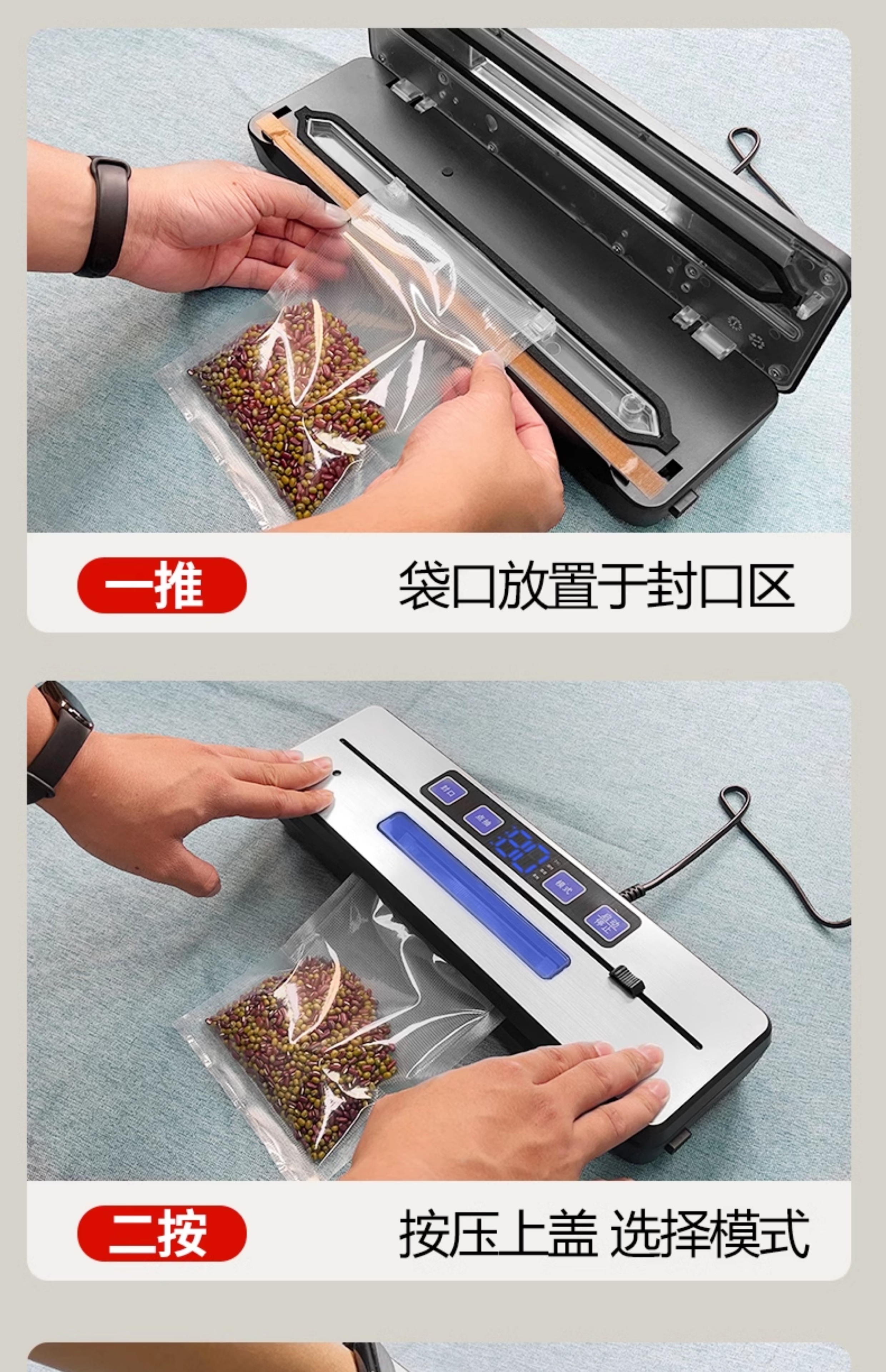 • 표준 구성: 이중 펌프 및 이중 전열선 100KPA(20x30cm 진공 백 50개 포함)