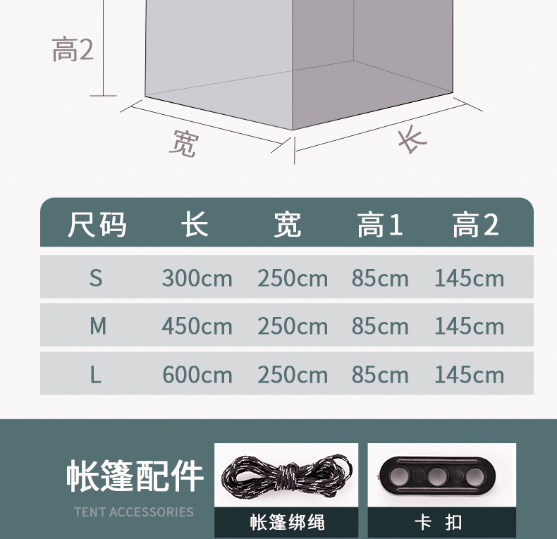 • 6* 3m 비닐 캐노피+6* 2.5m 거즈 텐트