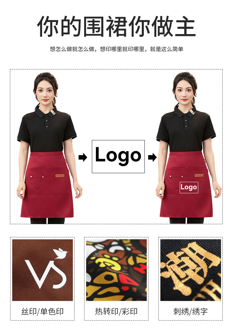 로고가 인쇄된 도매 레스토랑 방수 광고 반 허리 앞치마 제조업체 프로모션 이벤트 선물 프로모션 케이터링 앞치마스토어 가기
