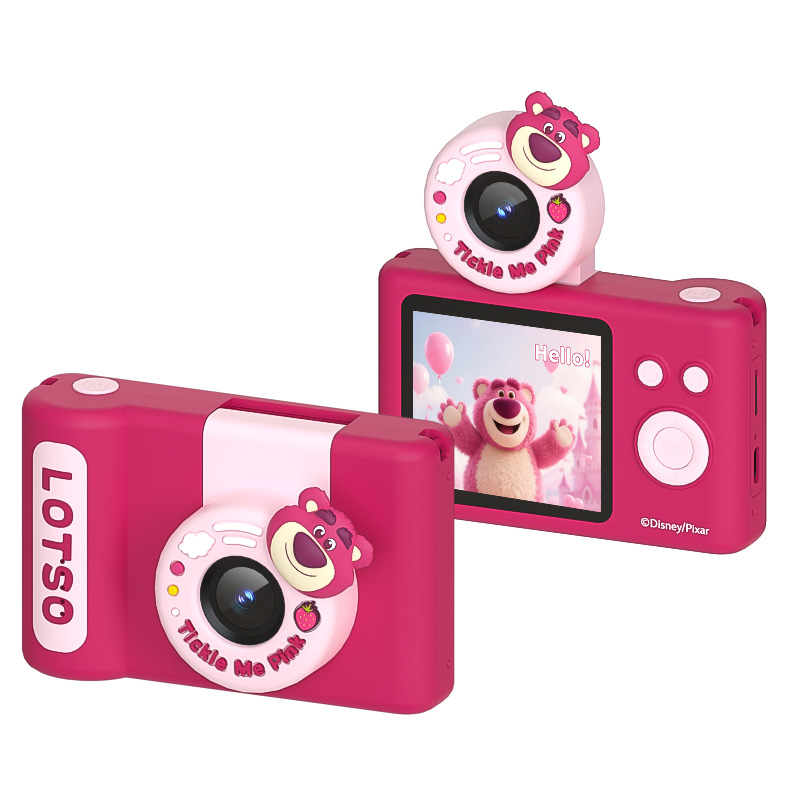 정품 딸기 곰 만화 어린이 카메라 4800W HD 듀얼 카메라 사진 및 비디오 촬영 생일 선물