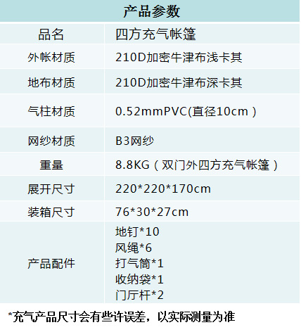 야외 캠핑용품 휴대용 일체형 에어필러 제조업체, 4.8평방미터 사각형 에어 텐트 도매 판매