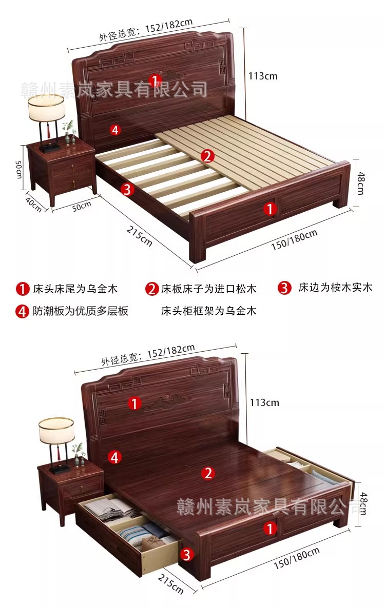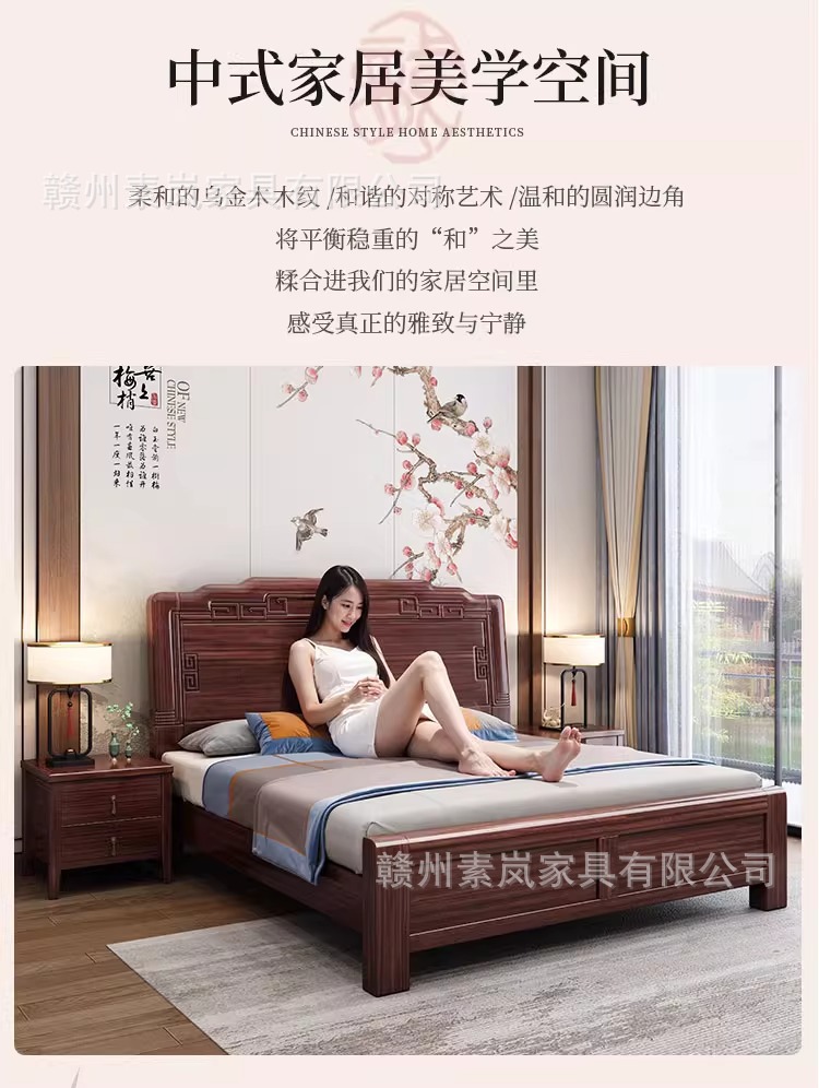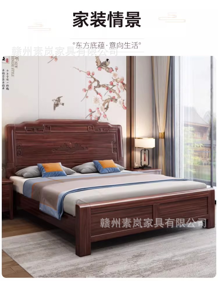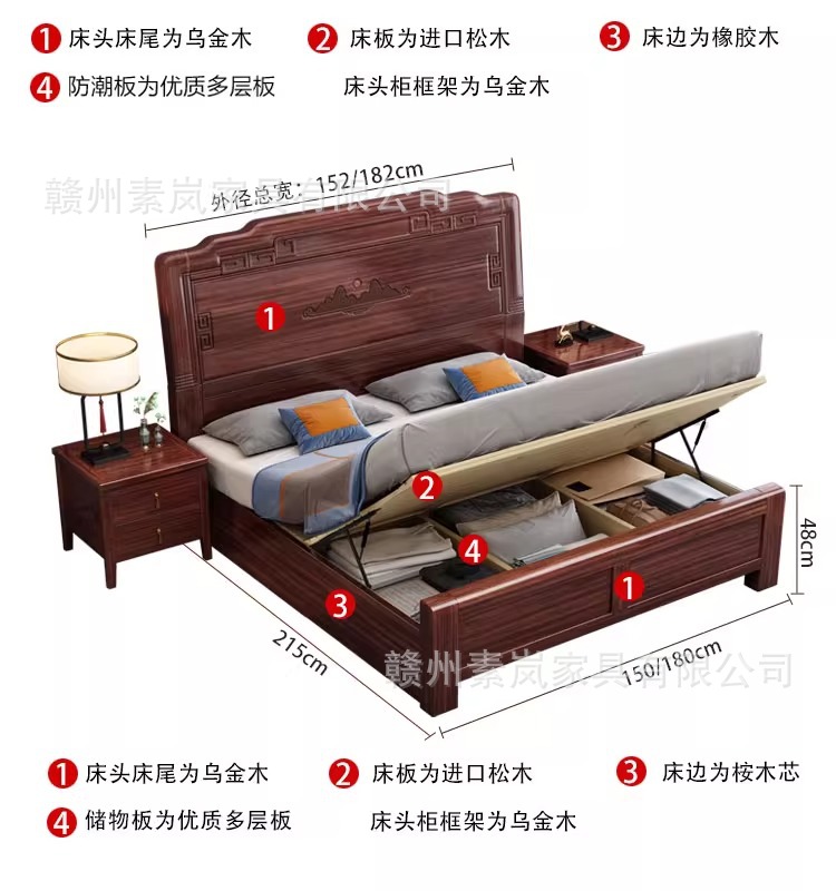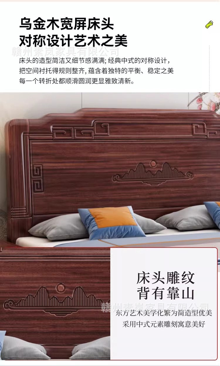 앤티크 조각된 새로운 중국 스타일의 검은색 금색 원목 침대 마스터 침실 1.8M 더블 침대 침실 1.5M 공기압 원목 침대스토어 가기