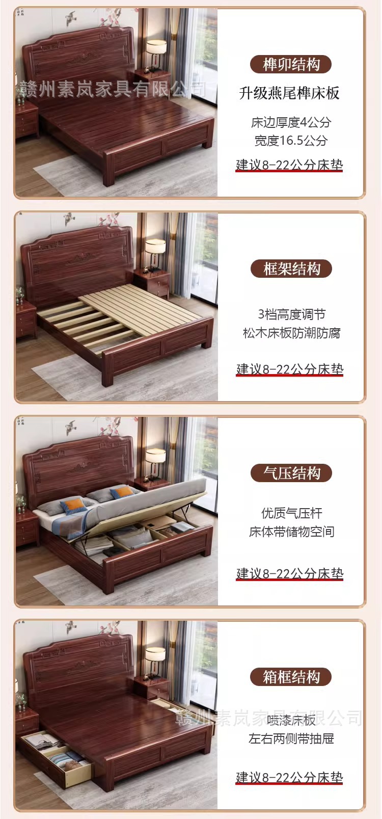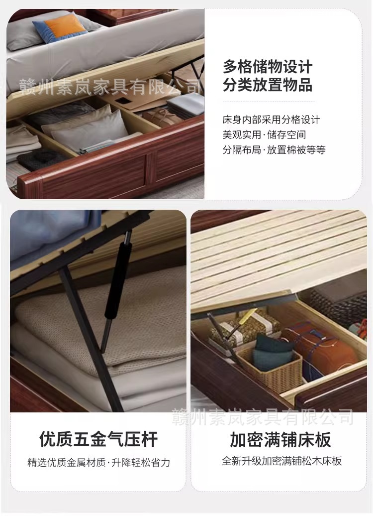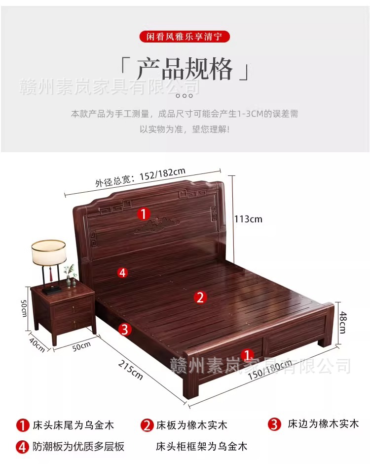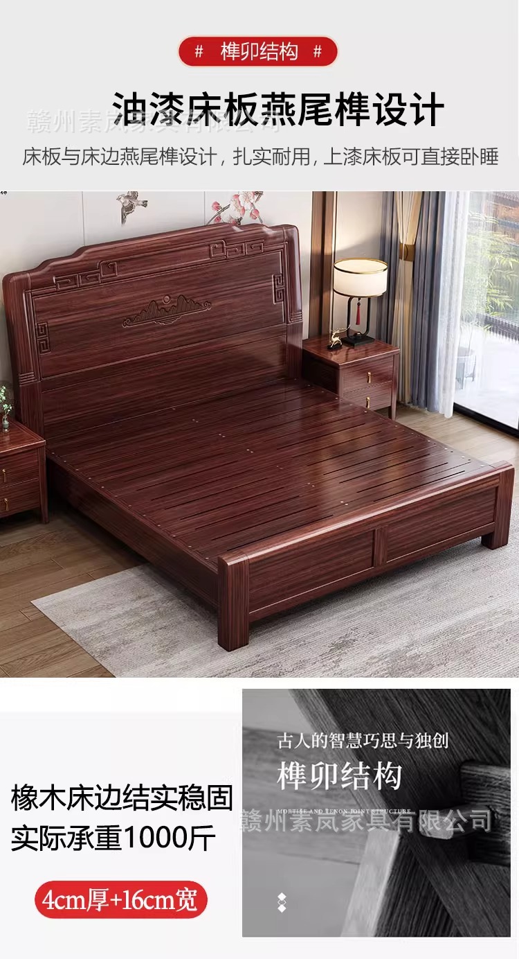 앤티크 조각된 새로운 중국 스타일의 검은색 금색 원목 침대 마스터 침실 1.8M 더블 침대 침실 1.5M 공기압 원목 침대스토어 가기