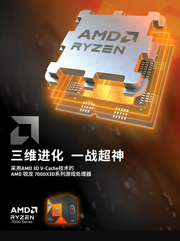 AMD Ryzen R7 7800X3D 게이밍 프로세서 5nm 8코어 16스레드 데스크탑 컴퓨터 박스형 CPU스토어 가기