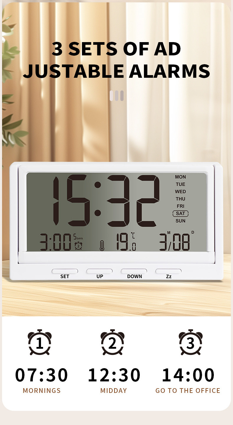 국경 간 새로운 LCD 접이식 알람 시계 데스크탑 다기능 온도 대형 스크린 디스플레이 간단한 투명 전자 시계