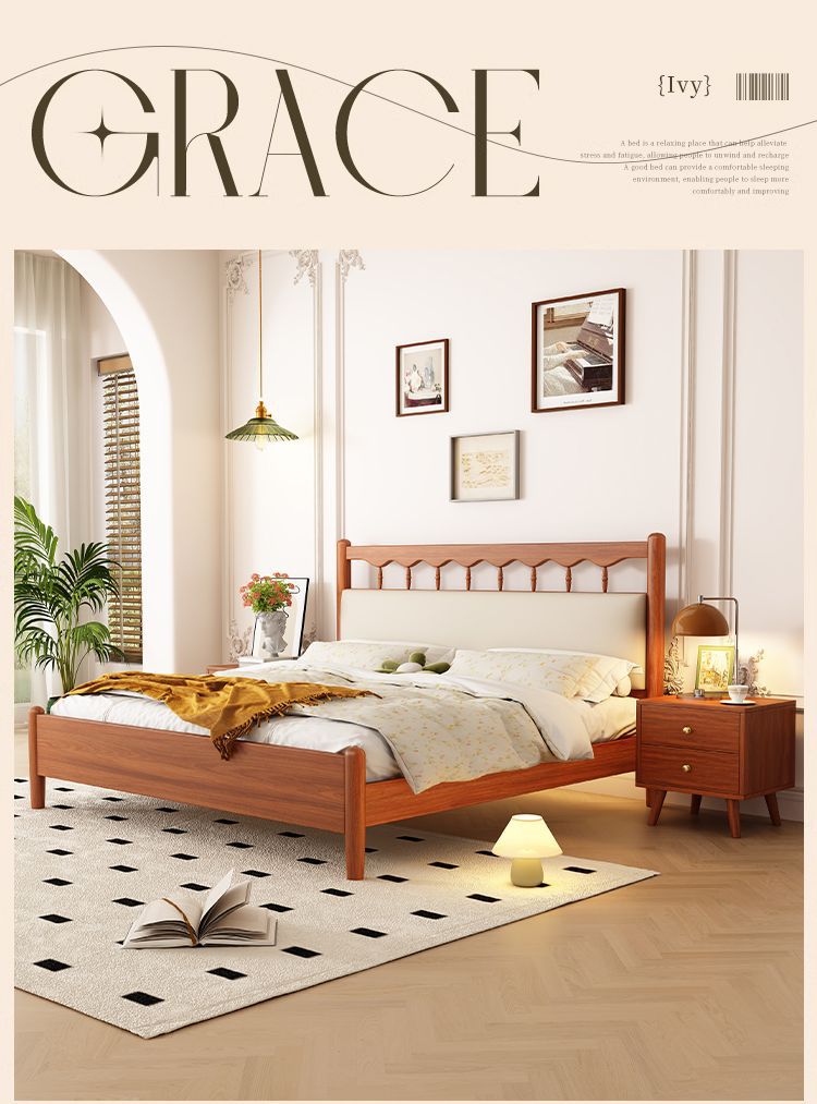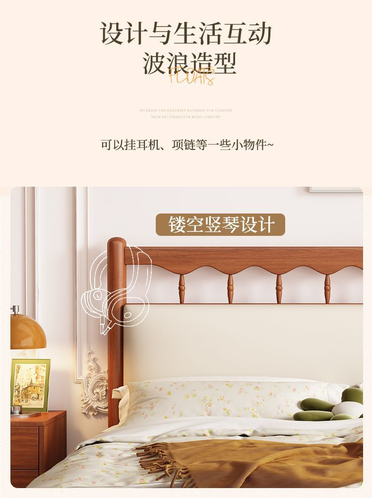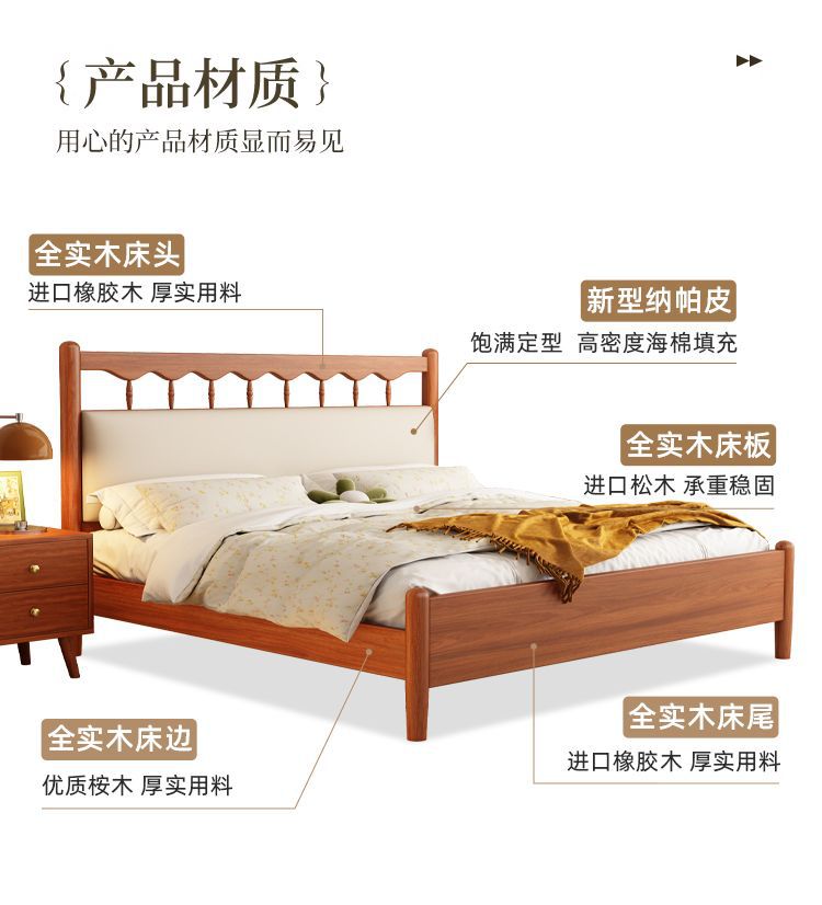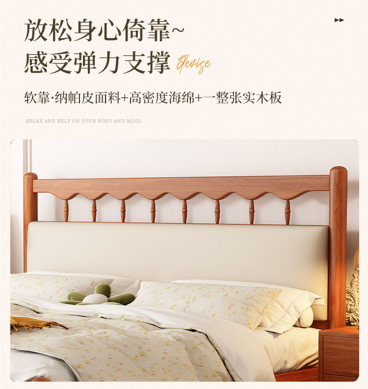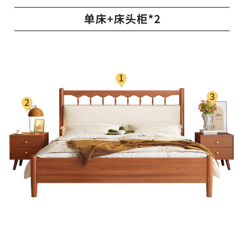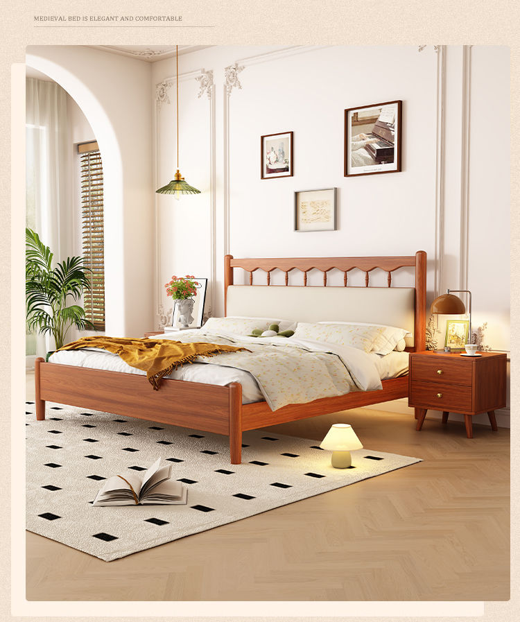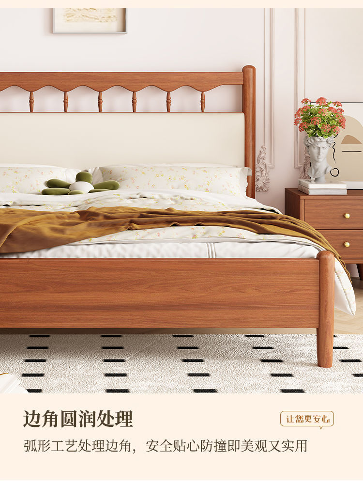 북유럽 복고풍 통나무 스타일 원목 침대 현대적인 단순 1.5 더블 마스터 침실 웨딩 침대 크림 스타일 일본식 B&B 침대스토어 가기