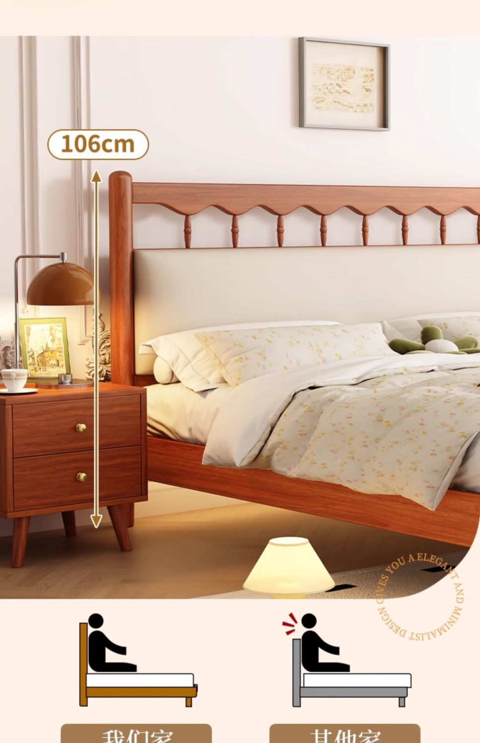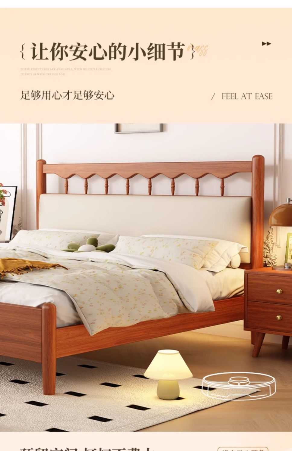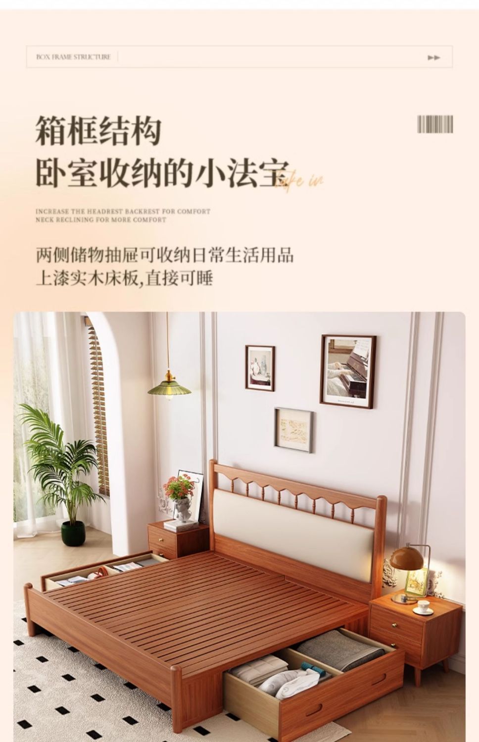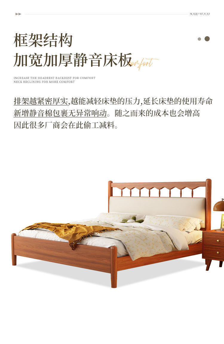 북유럽 복고풍 통나무 스타일 원목 침대 현대적인 단순 1.5 더블 마스터 침실 웨딩 침대 크림 스타일 일본식 B&B 침대스토어 가기