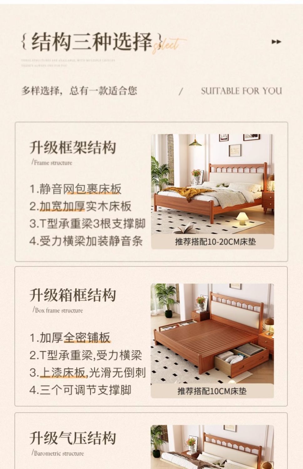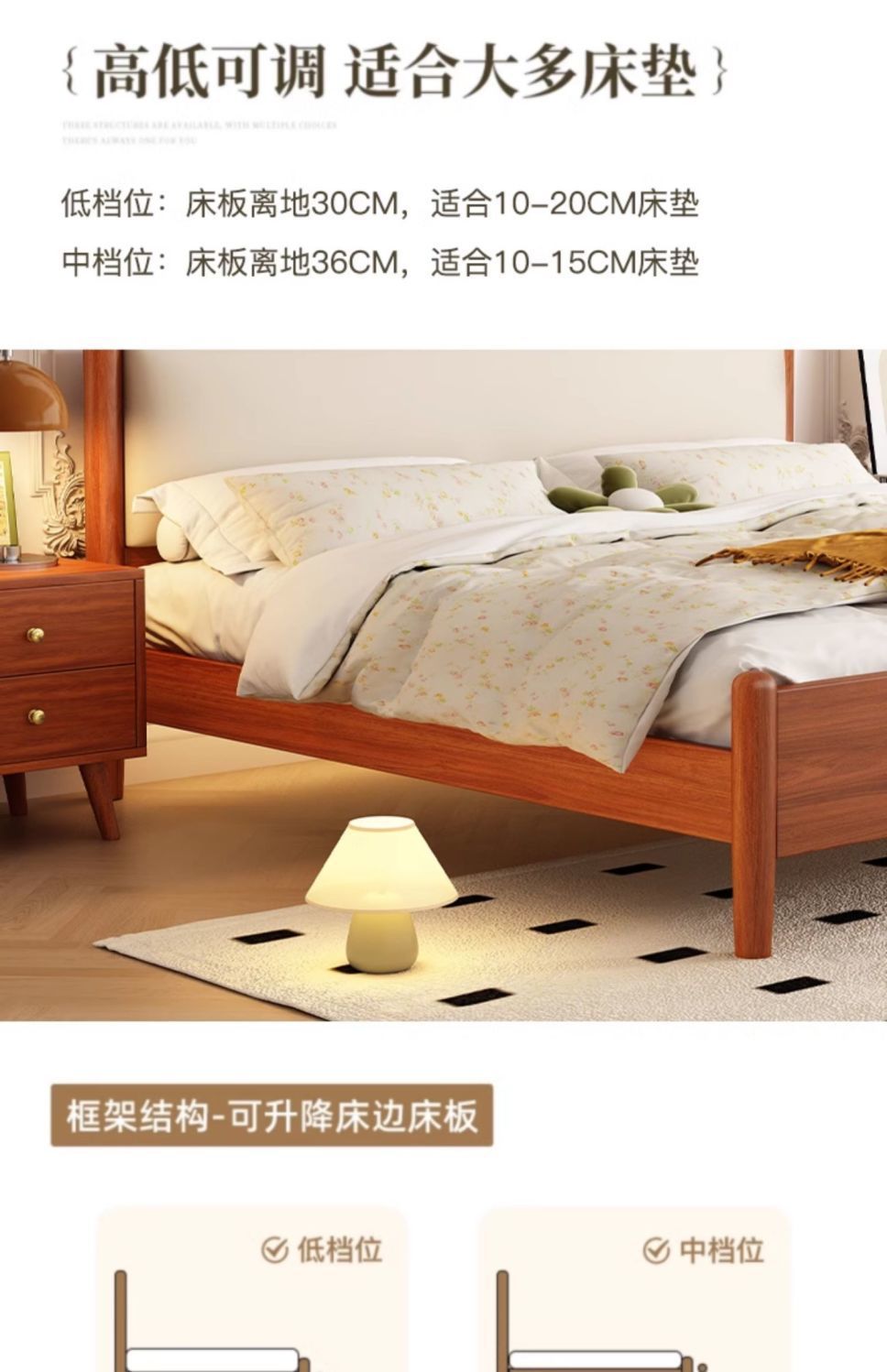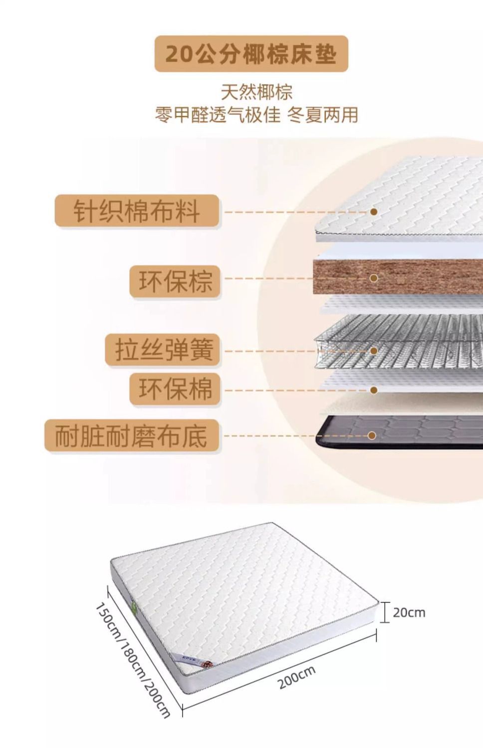 • 고급 싱글 침대 + 20cm 코코넛 야자 매트리스 + 캐비닛*2