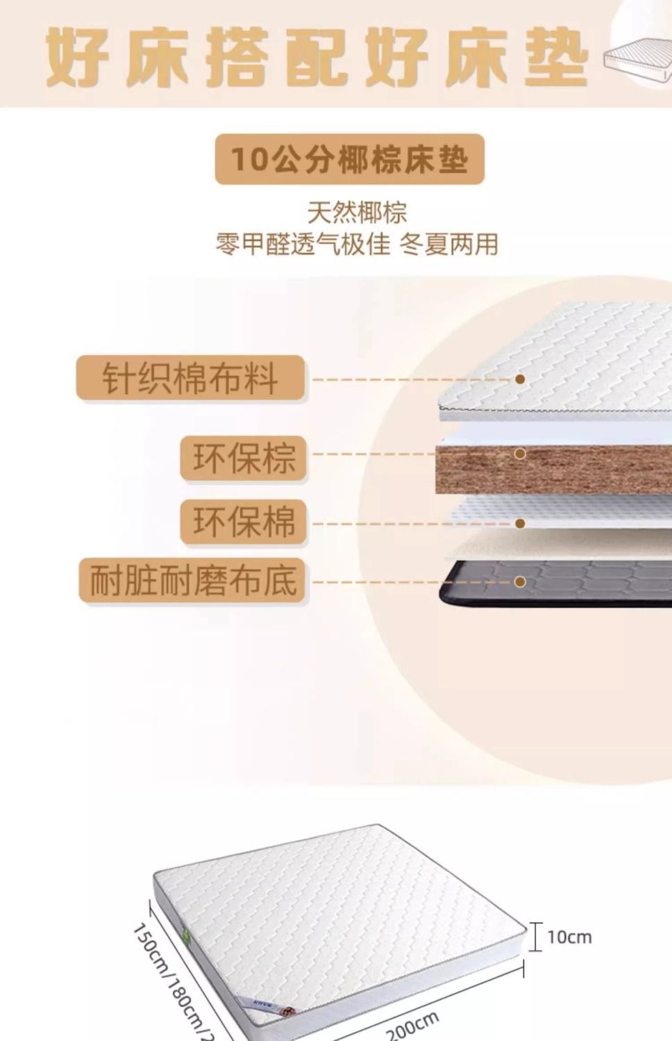 • 고급 싱글 침대 + 10cm 코코넛 야자 매트리스