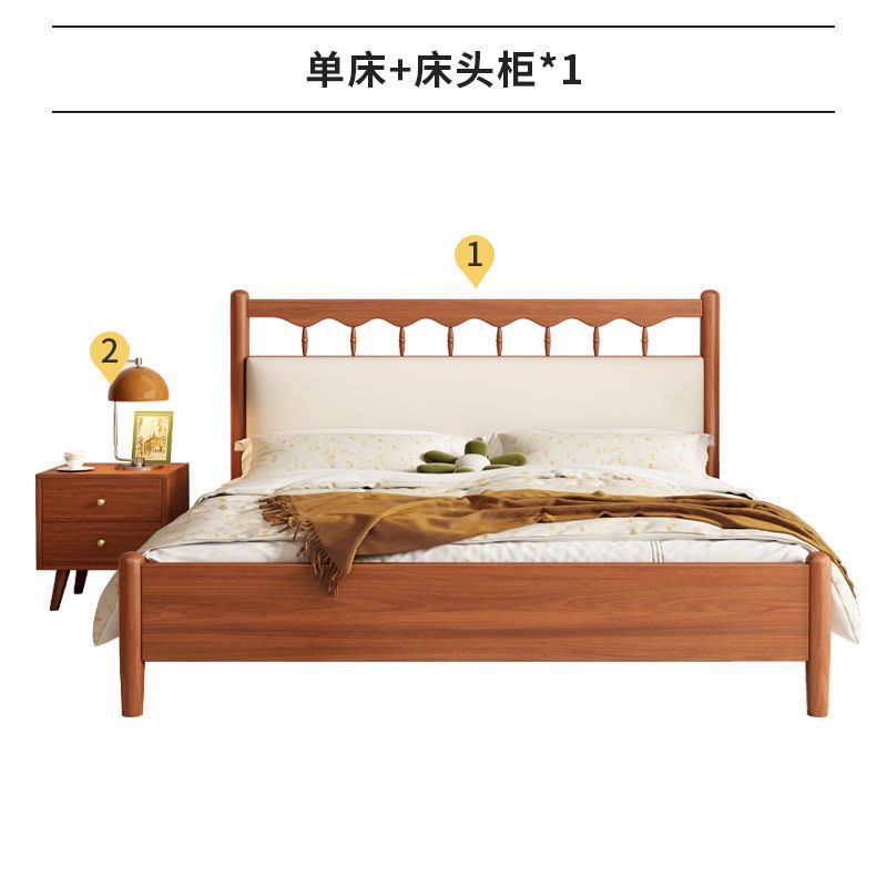 북유럽 복고풍 통나무 스타일 원목 침대 현대적인 단순 1.5 더블 마스터 침실 웨딩 침대 크림 스타일 일본식 B&B 침대