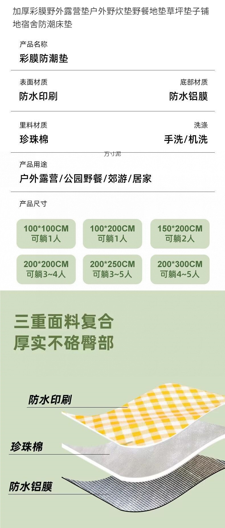 두꺼운 컬러 필름 필드 캠핑 매트 야외 피크닉 매트 피크닉 매트 매트리스 바닥 매트 기숙사 방습 매트리스 공장스토어 가기