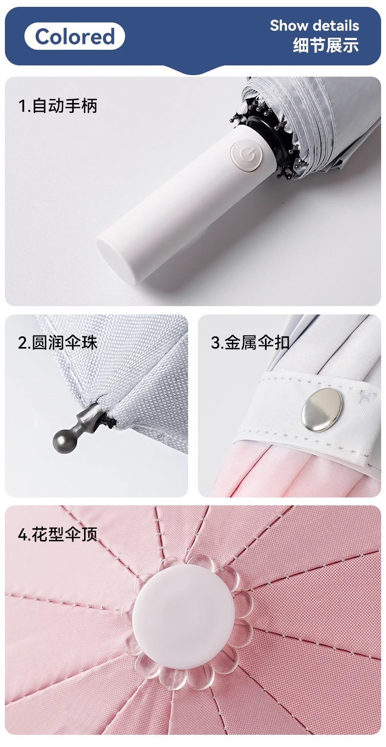 그라데이션 완전 자동 우산, 비가 오나 눈이 오나 남성용 및 여성용 파라솔, 확대, 두껍고 강화, 접이식, 방풍, 학생들이 학교에 갈 수 있음