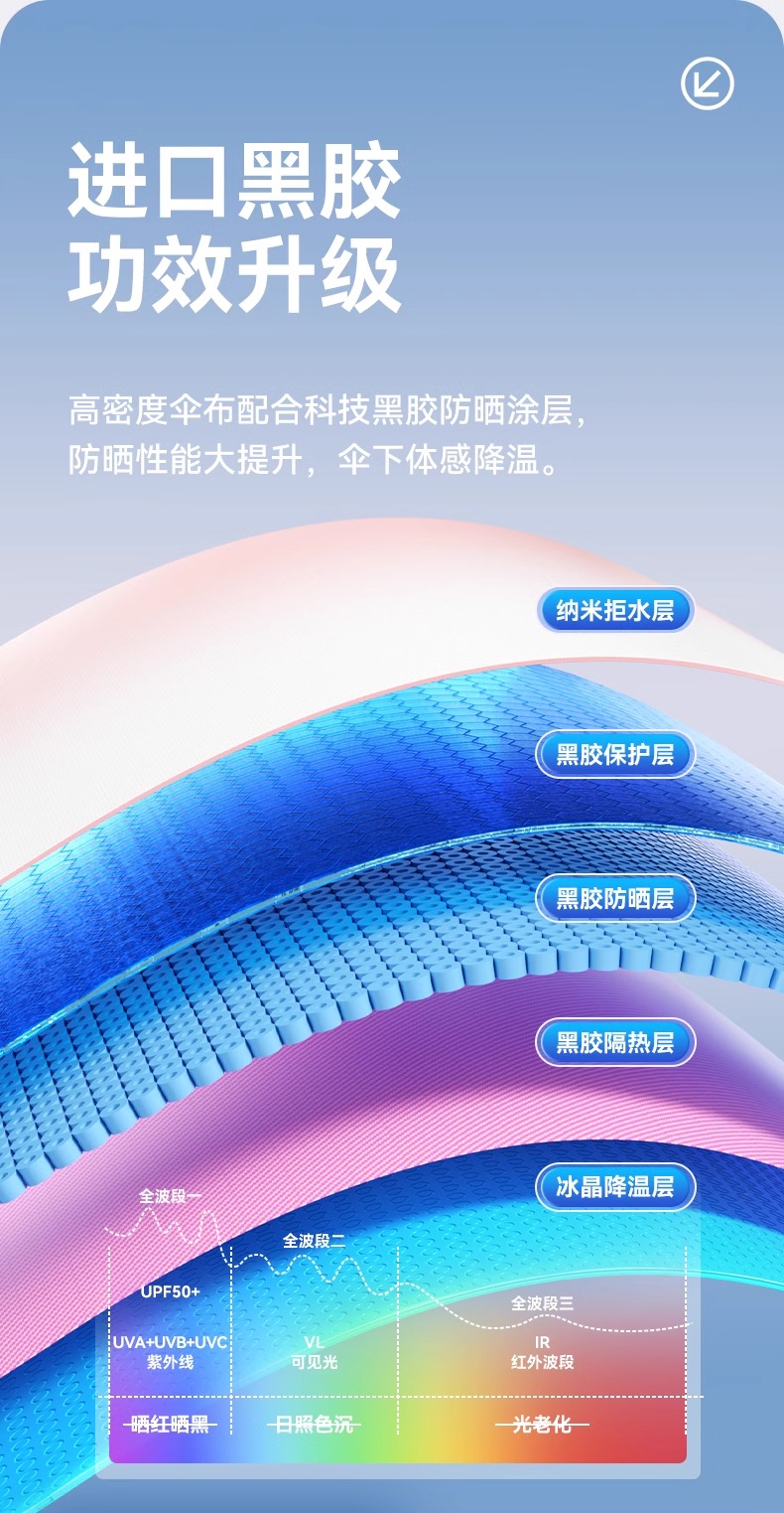 • 이중 단열재 ️ 유리섬유 방풍 우산 갈비뼈 ️ 자외선을 99% 효과적으로 차단하는 제품입니다 ️