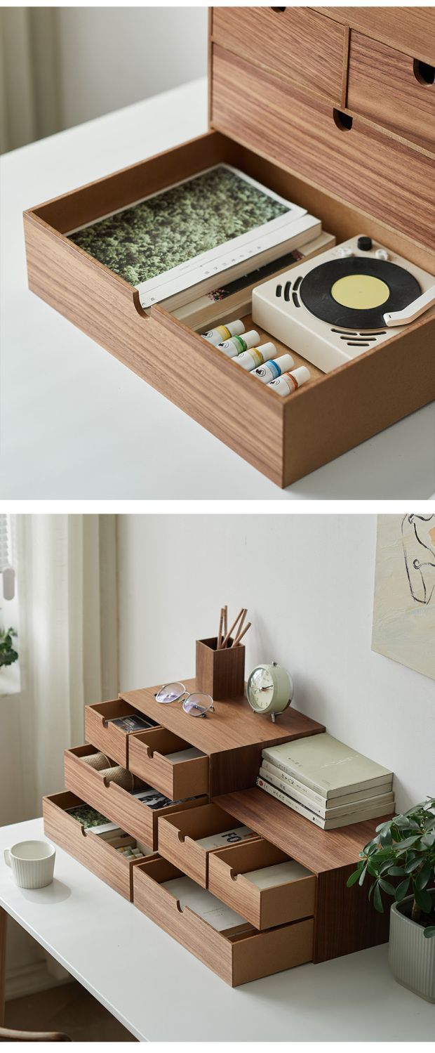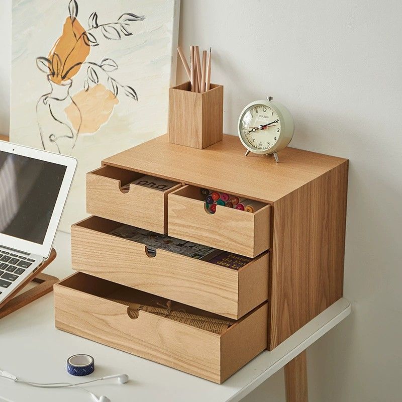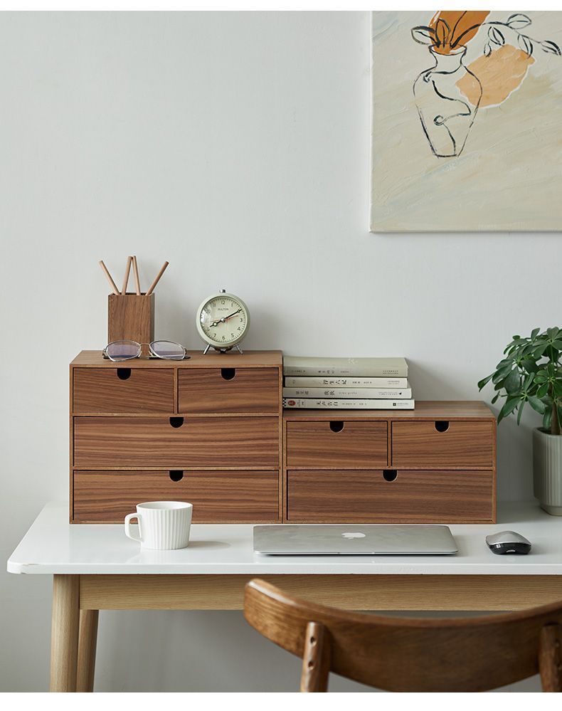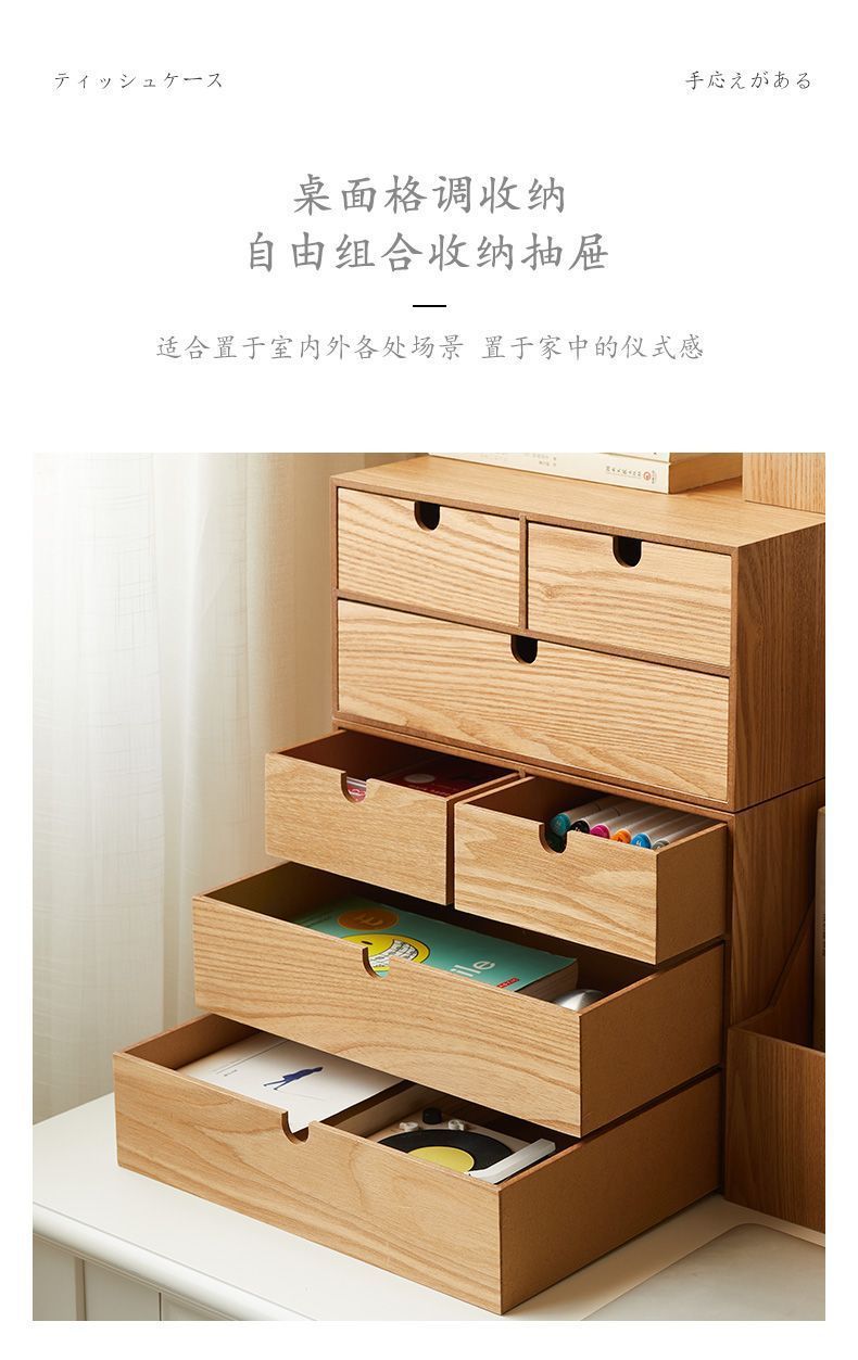 다층 다기능 데스크탑 보관함 서랍 보석 상자 잡다한 침실 사무실 보관 일본식 나무 상자