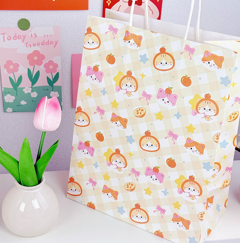 귀여운 격자 무늬 고양이와 개 아름다운 선물 가방 고급스러운 대용량 휴일 생일 선물 포장 보관 가방스토어 가기