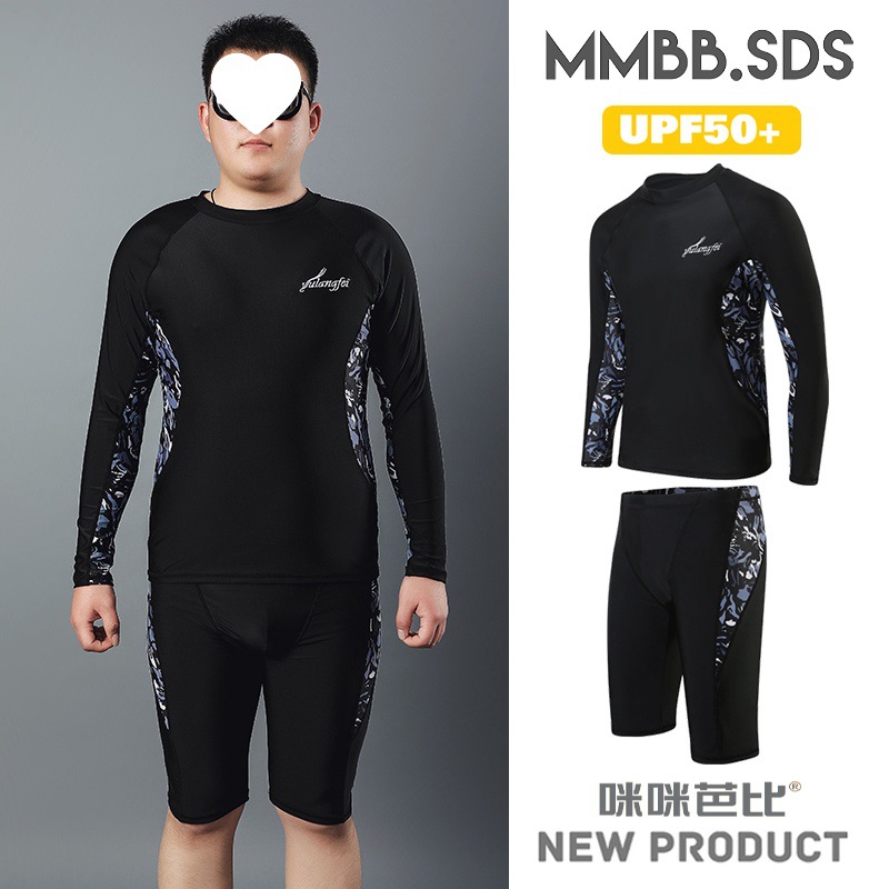 남성용 플러스 사이즈 수영 트렁크 175kg 뚱뚱한 남자 수영복 전신 뚱뚱한 남자 긴팔 바지 자외선 차단 잠수복 속건성