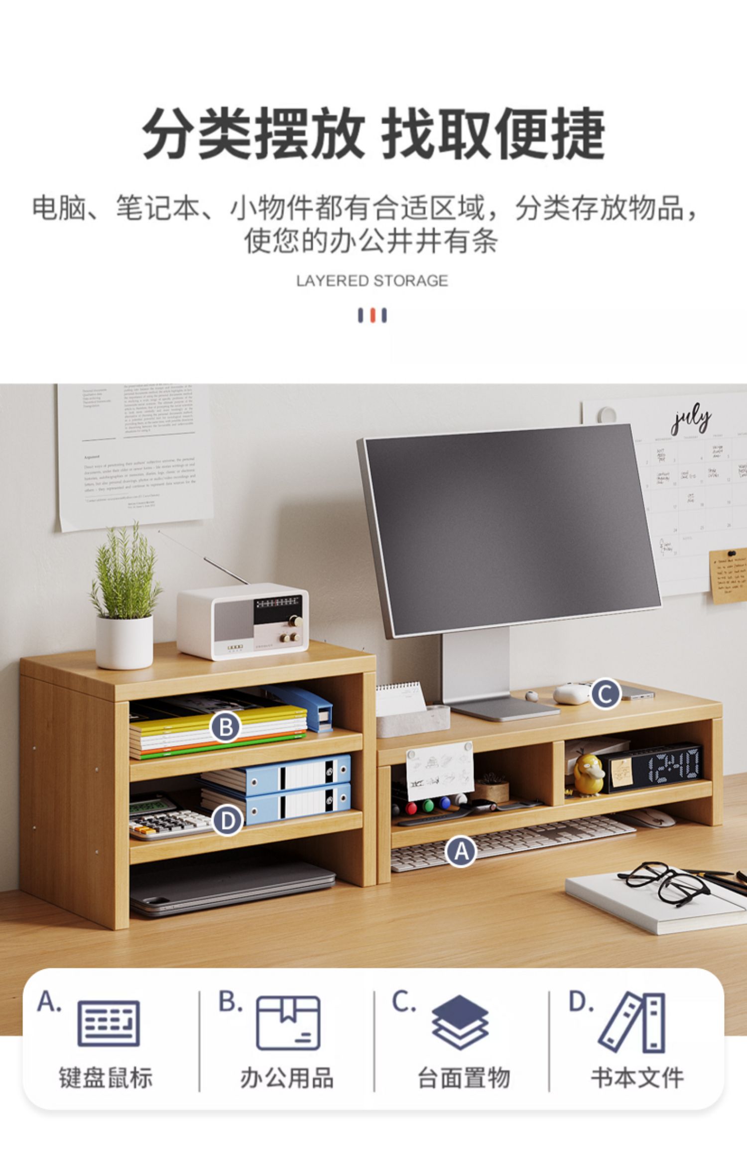 모니터 높이 조절 스탠드 간단한 데스크탑 컴퓨터 베이스 수납 키보드 책 데스크탑 수납함 선반 수납 선반