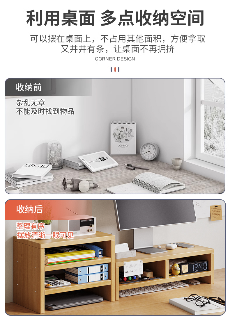 모니터 높이 조절 스탠드 간단한 데스크탑 컴퓨터 베이스 수납 키보드 책 데스크탑 수납함 선반 수납 선반스토어 가기