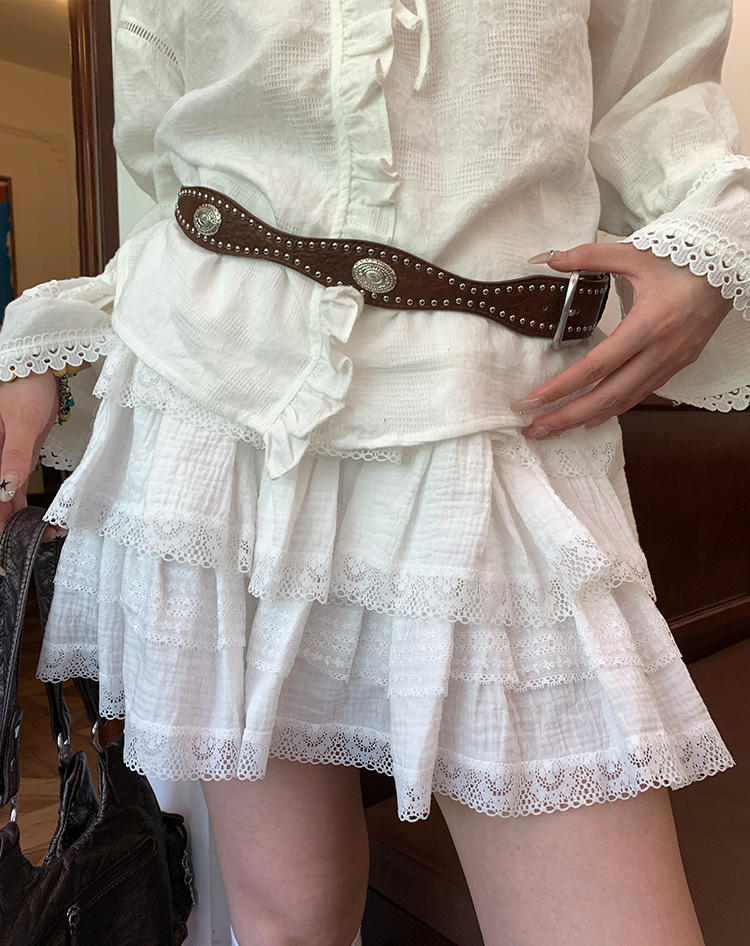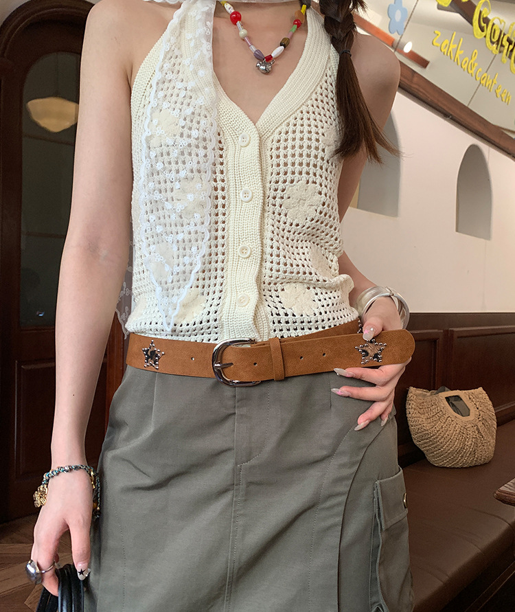 레트로 보헤미안 스타일 브라운 벨트 여성 틈새 리벳 민족 스타일 스커트와 청바지 허리띠 트렌드