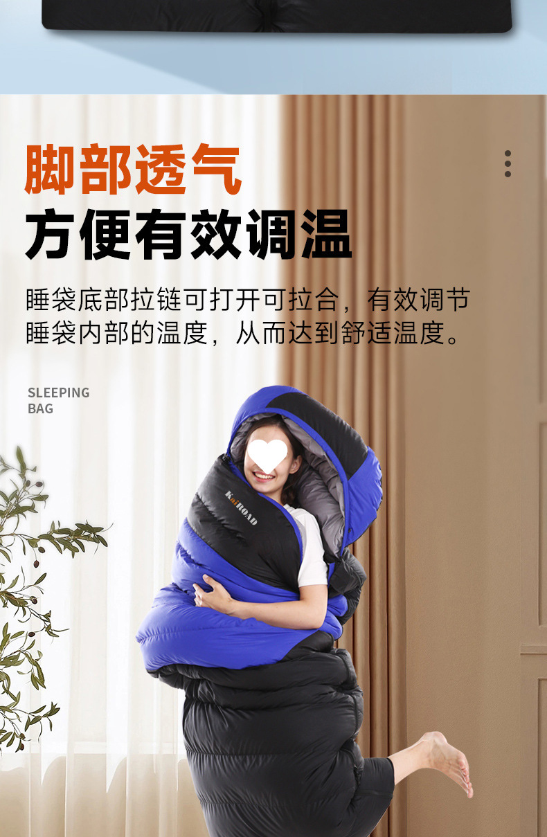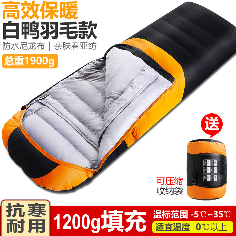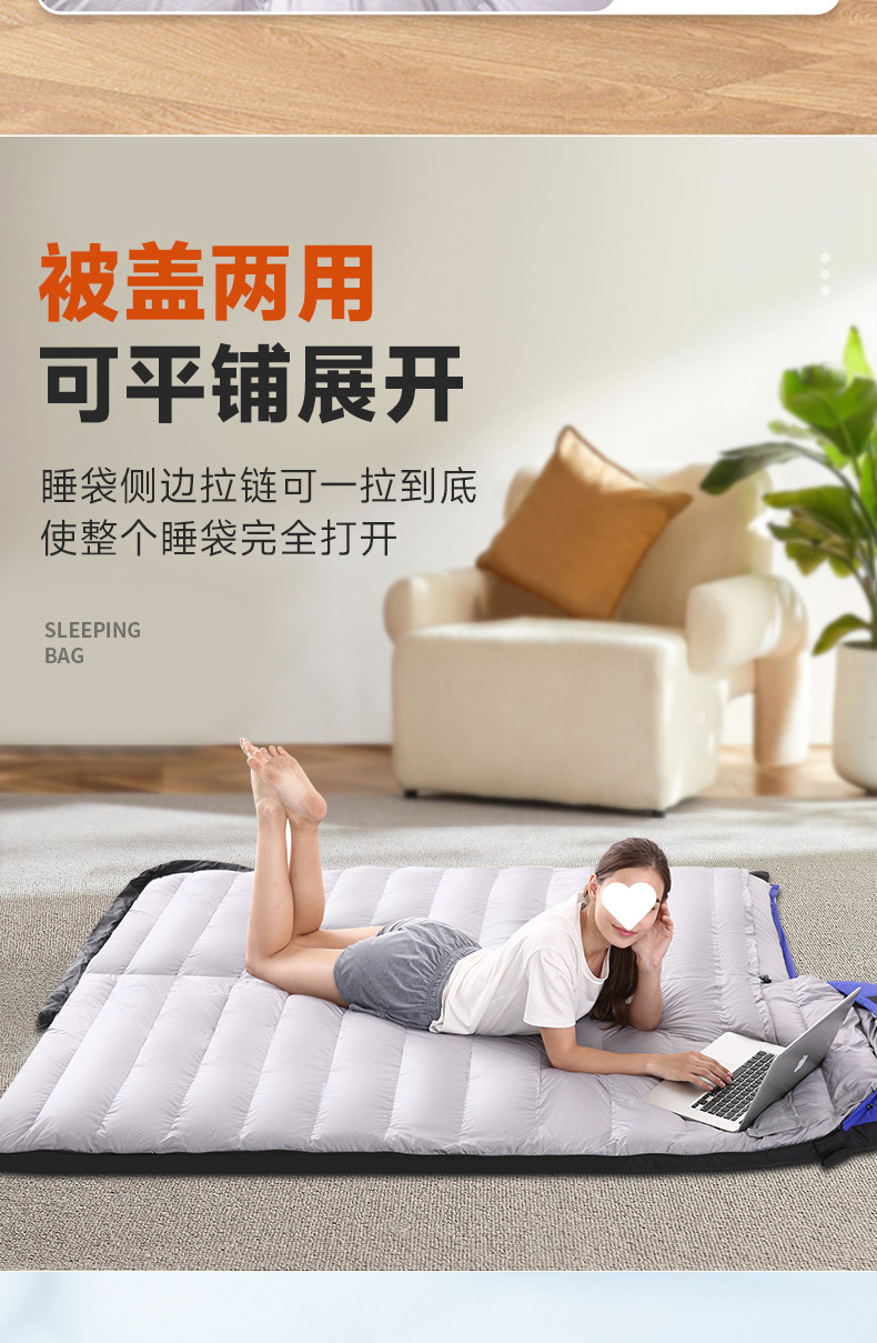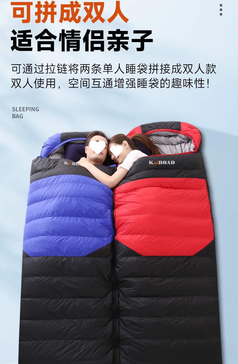 가을 겨울 캠핑을 위한 성인용 아웃도어 다운 침낭, 실내 깃털 침낭, 따뜻하고 두툼한 여행용 침낭.스토어 가기