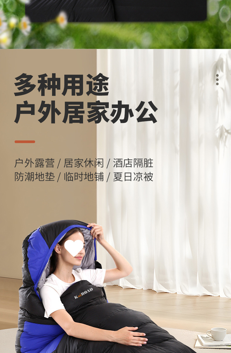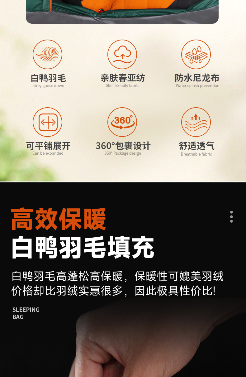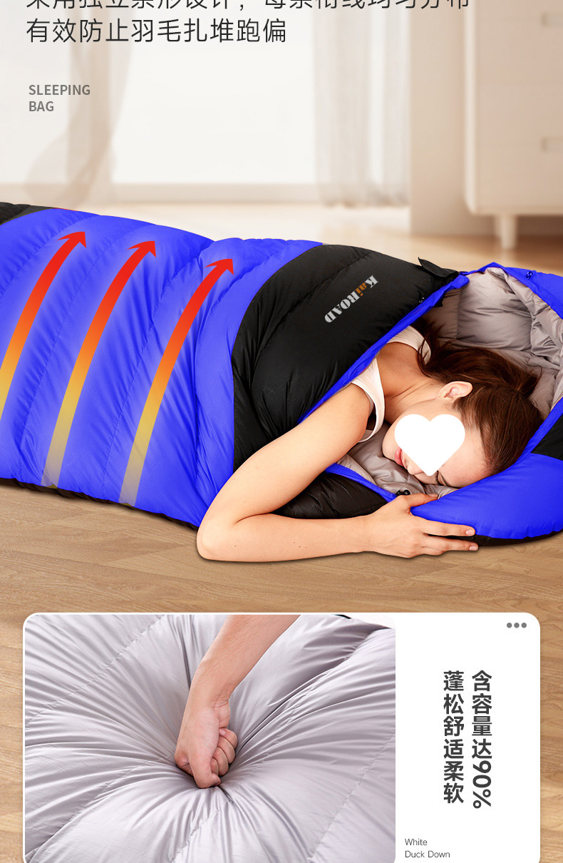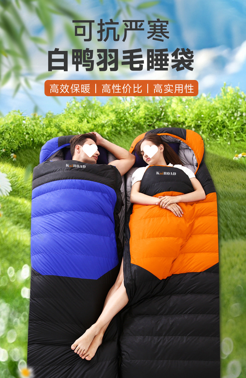 가을 겨울 캠핑을 위한 성인용 아웃도어 다운 침낭, 실내 깃털 침낭, 따뜻하고 두툼한 여행용 침낭.스토어 가기