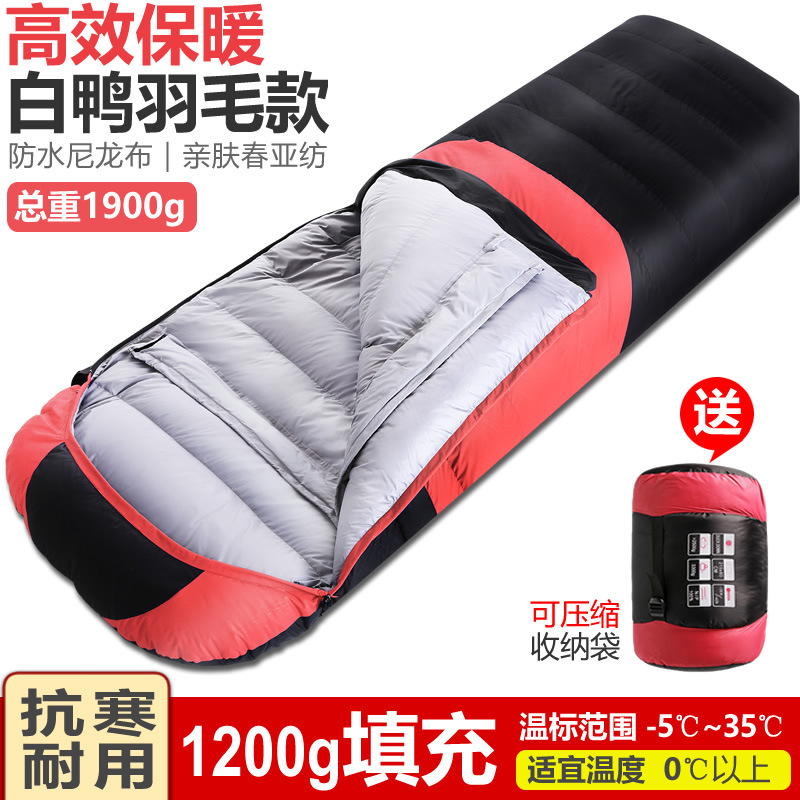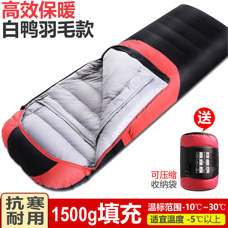 가을 겨울 캠핑을 위한 성인용 아웃도어 다운 침낭, 실내 깃털 침낭, 따뜻하고 두툼한 여행용 침낭.
