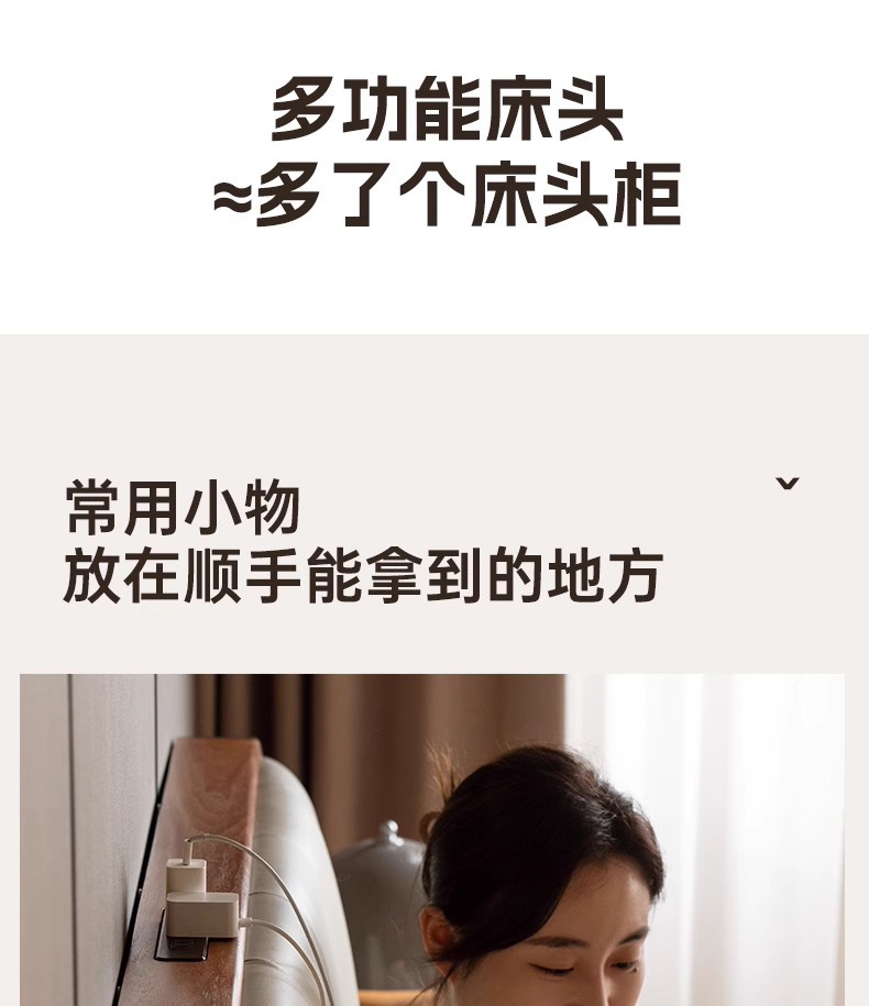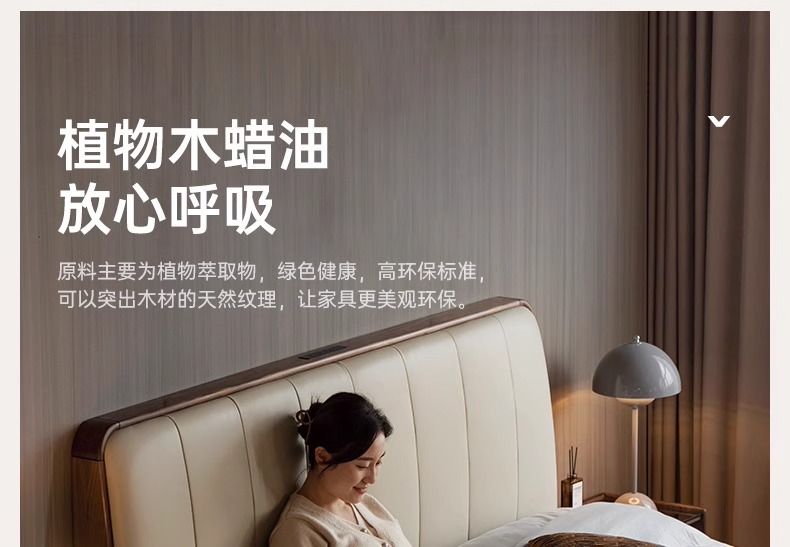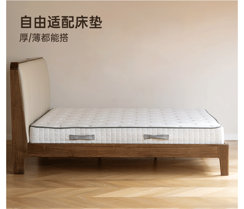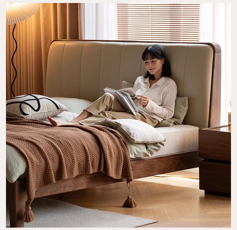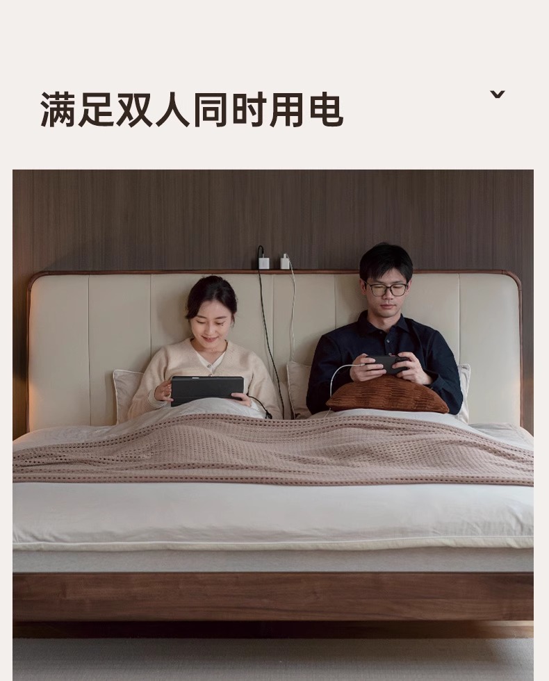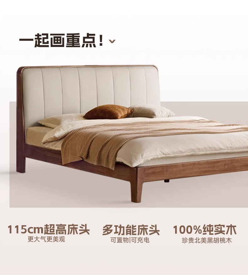 단단한 나무 침대, 가죽 부드러운 침대, 간단한 검은 호두나무 더블 침대, 소켓이 있는 침실, 1.8 대형 침대
