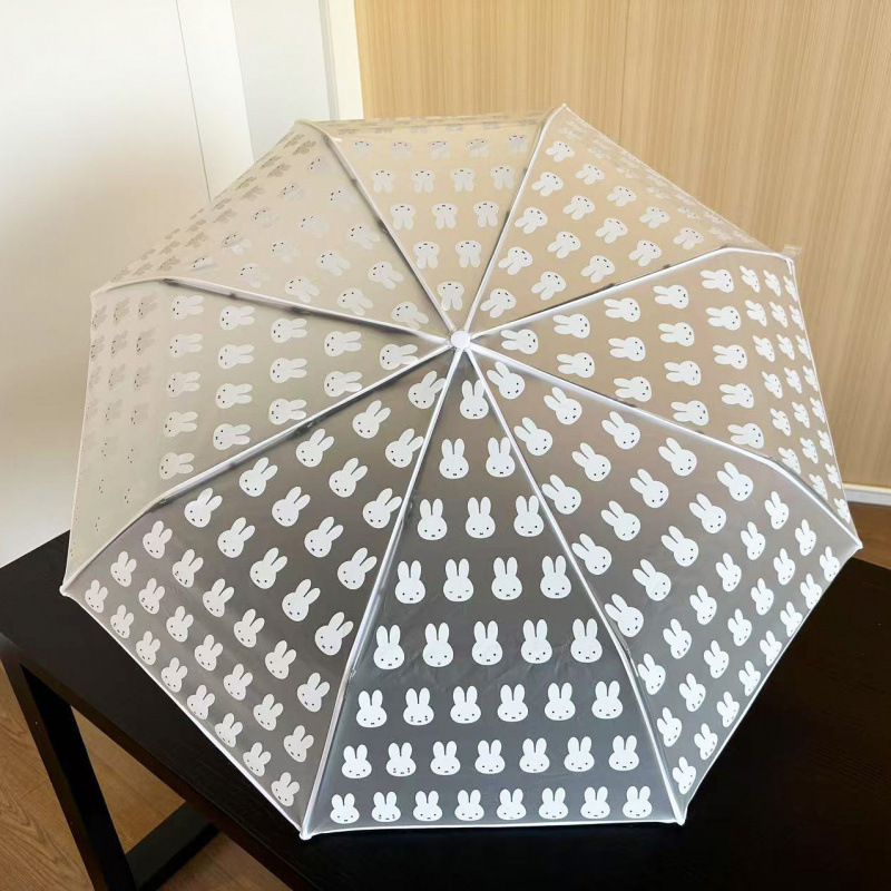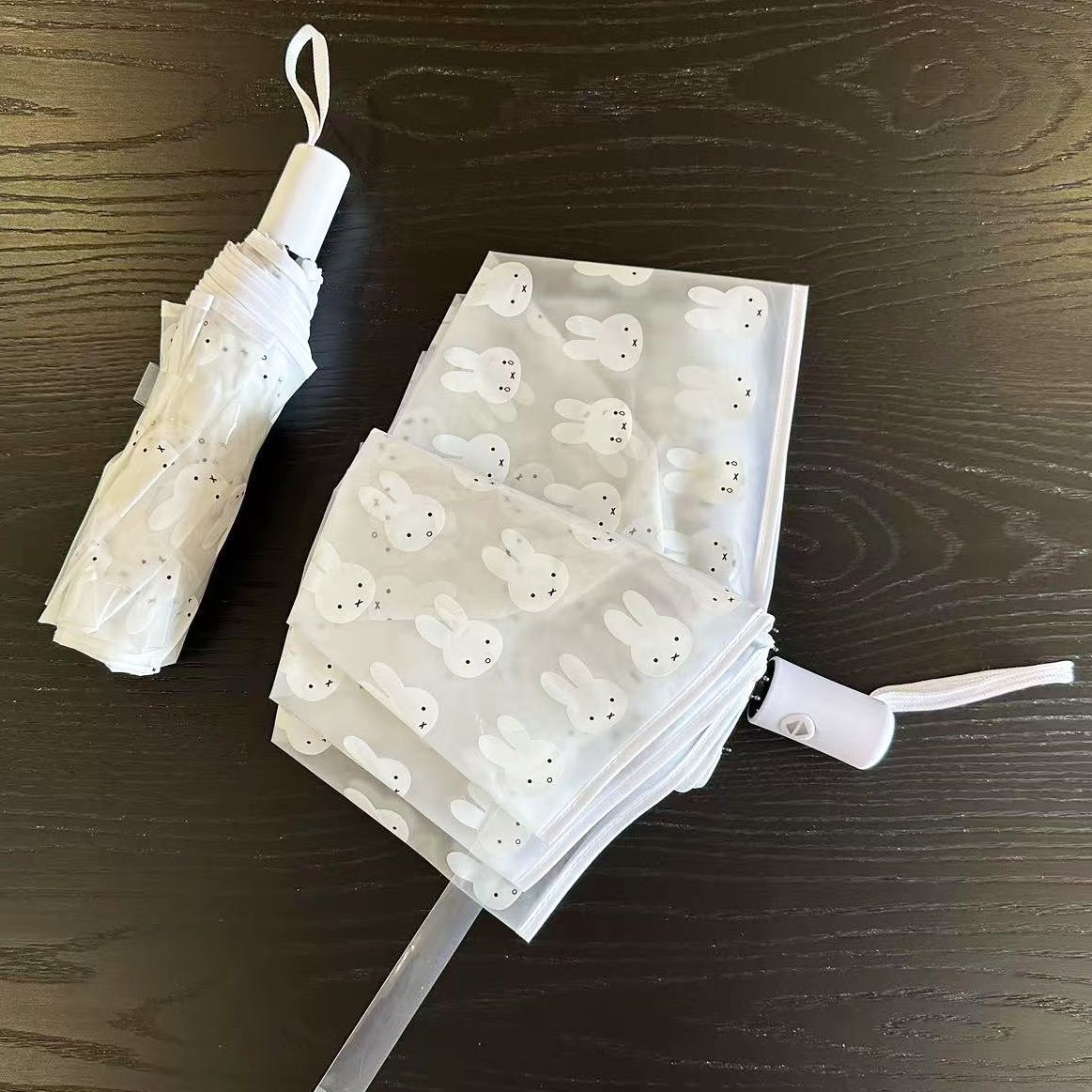 Miffy 반투명 비 또는 빛 신선하고 투명한 우산 귀여운 학생 완전 자동 휴대용 어린이 만화 접이식