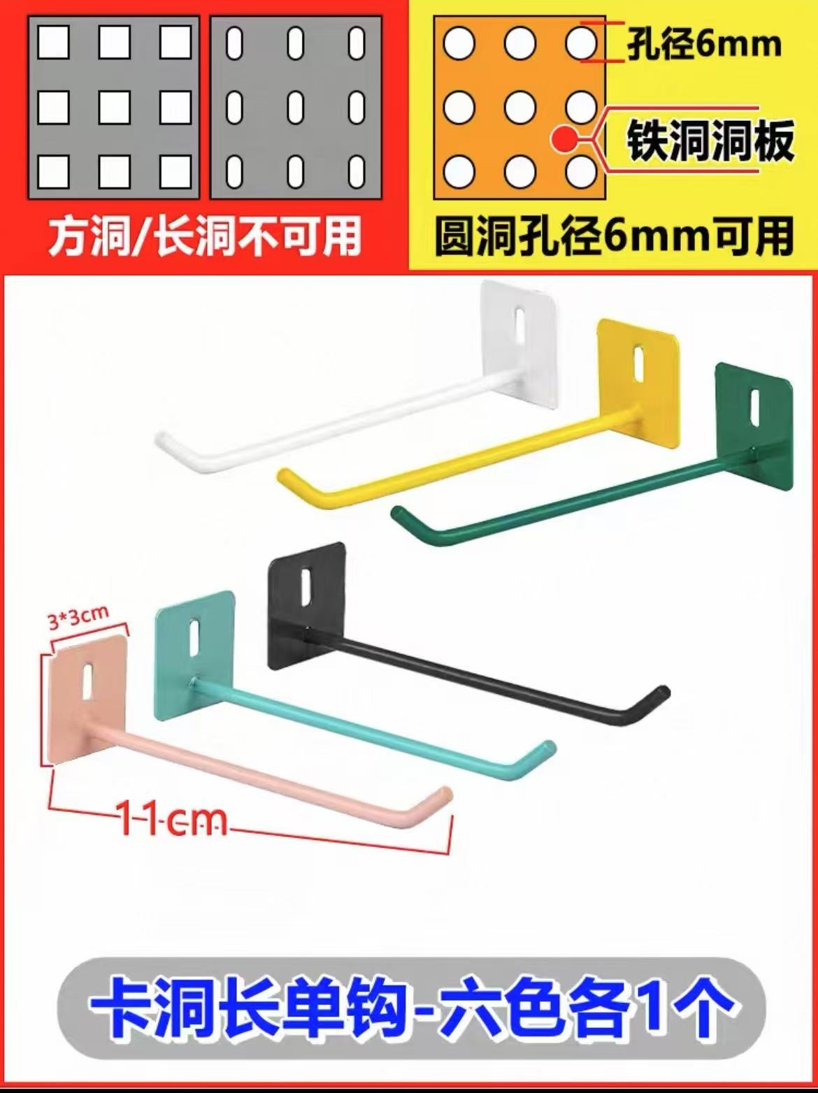 하드웨어 후크 액세서리 범용 부품 후크 스토리지 랙 DIY 데스크 랙 컬렉션 6mm 홀 보드 소형 액세서리스토어 가기