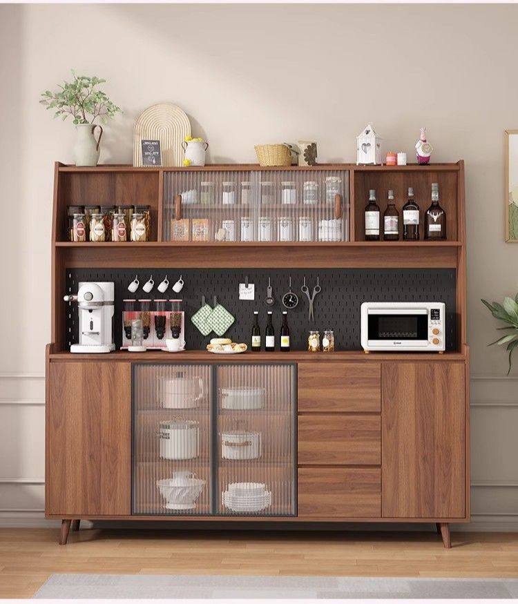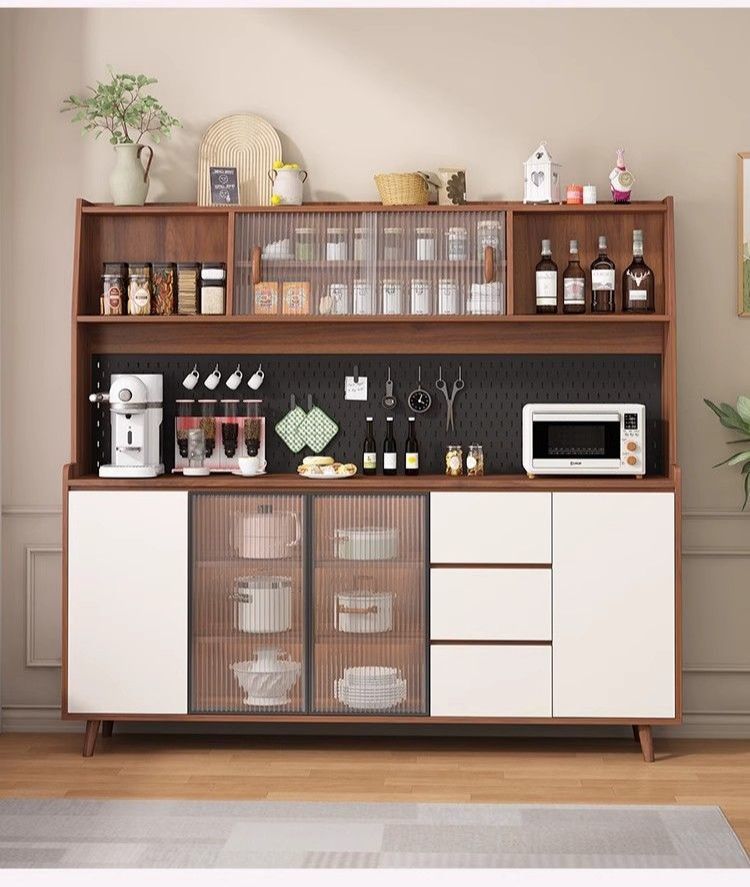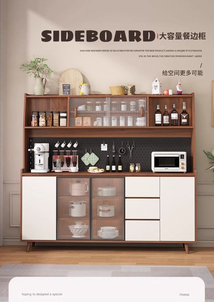 단단한 나무 찬장 벽 일체형 거실 와인 캐비닛 다기능 주방 수납 캐비닛 차 수납 완제품 찬장스토어 가기