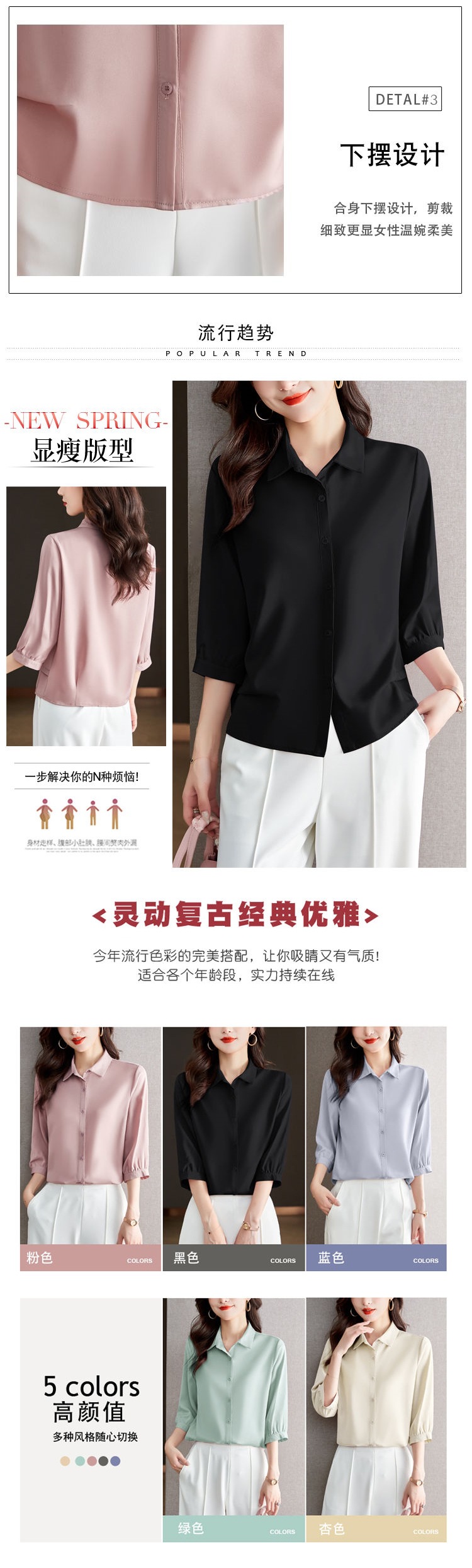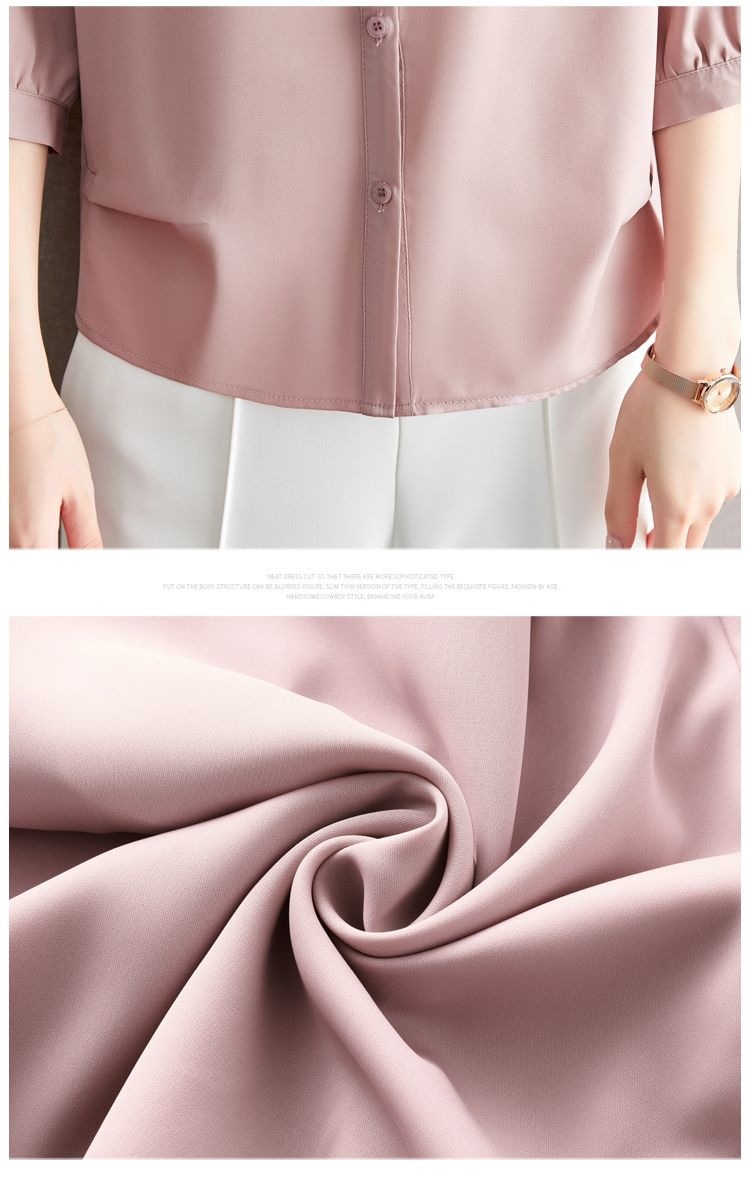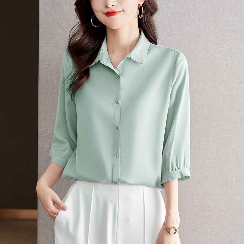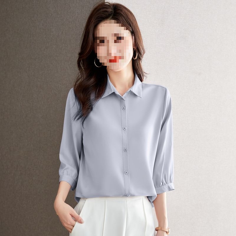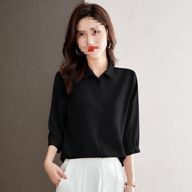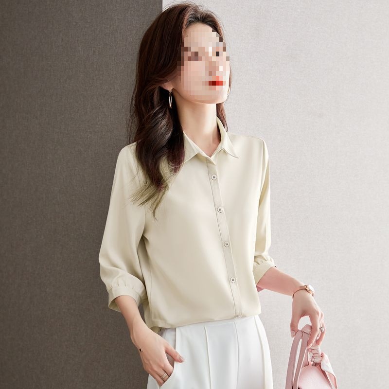 솔리드 컬러 7부 소매 셔츠 여성 가을 새로운 느슨한 옷깃 탑 다목적 슬리밍 패션 기질 쉬폰 셔츠