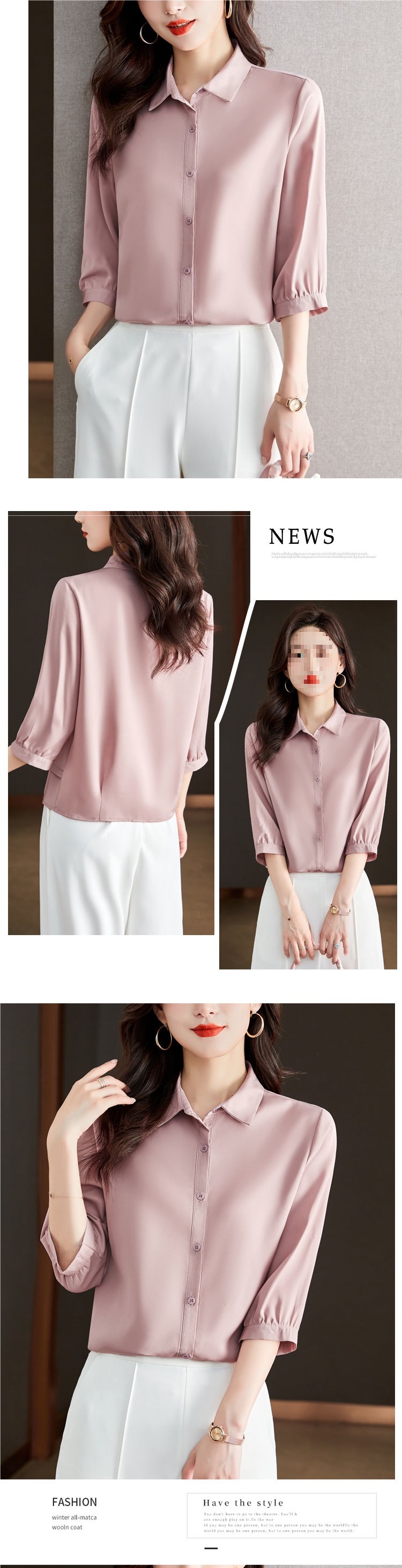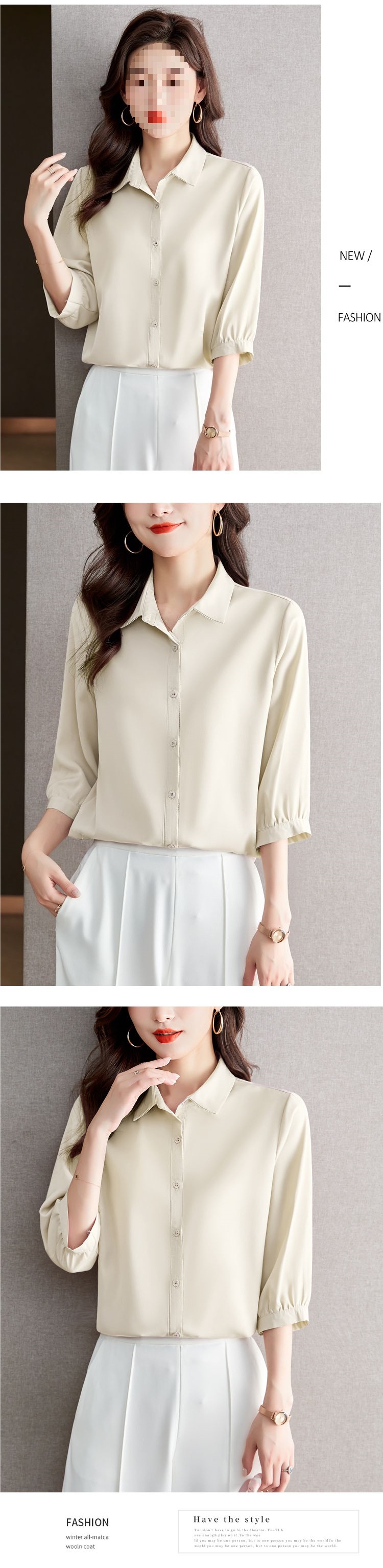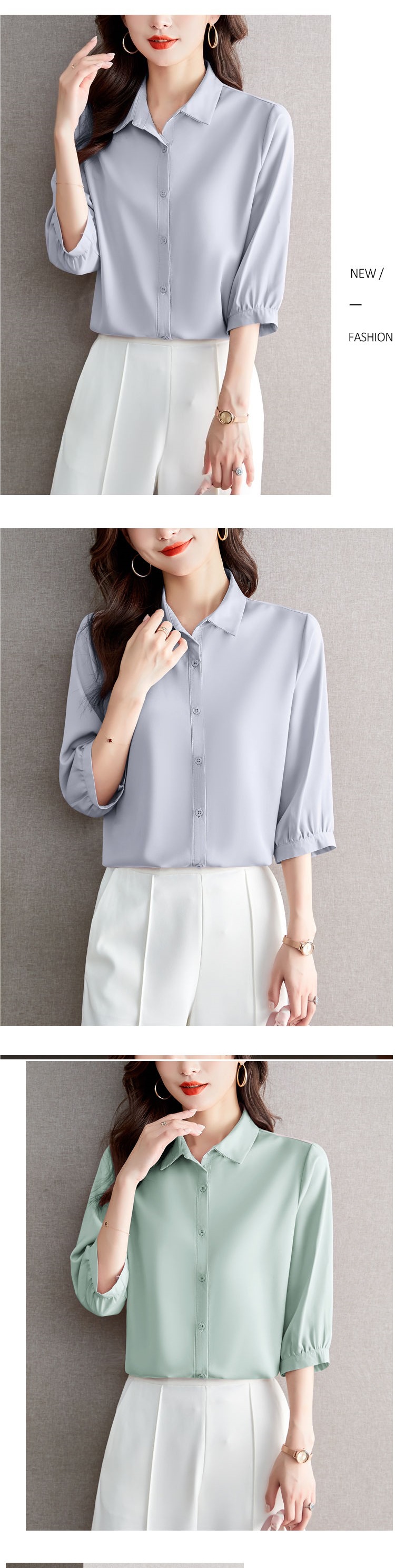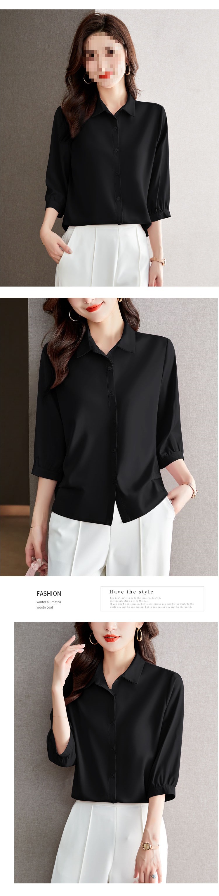 솔리드 컬러 7부 소매 셔츠 여성 가을 새로운 느슨한 옷깃 탑 다목적 슬리밍 패션 기질 쉬폰 셔츠스토어 가기