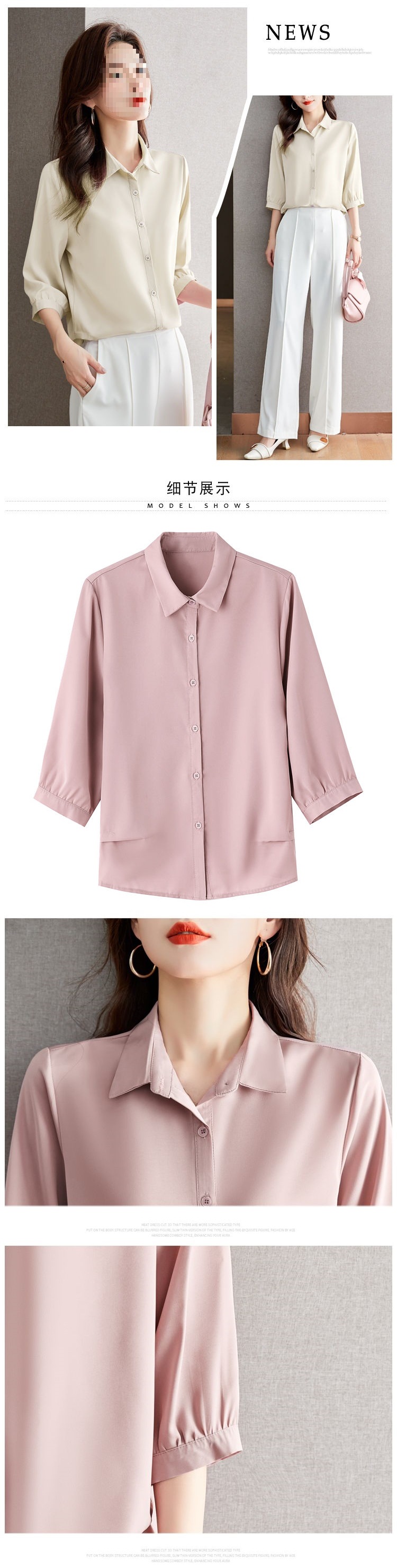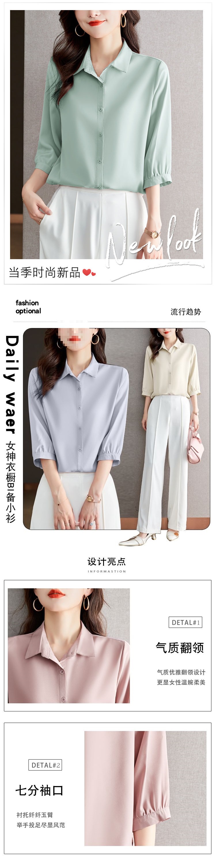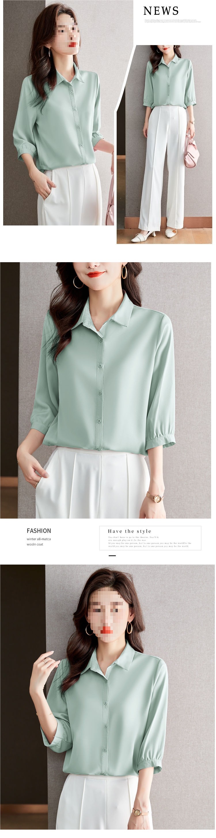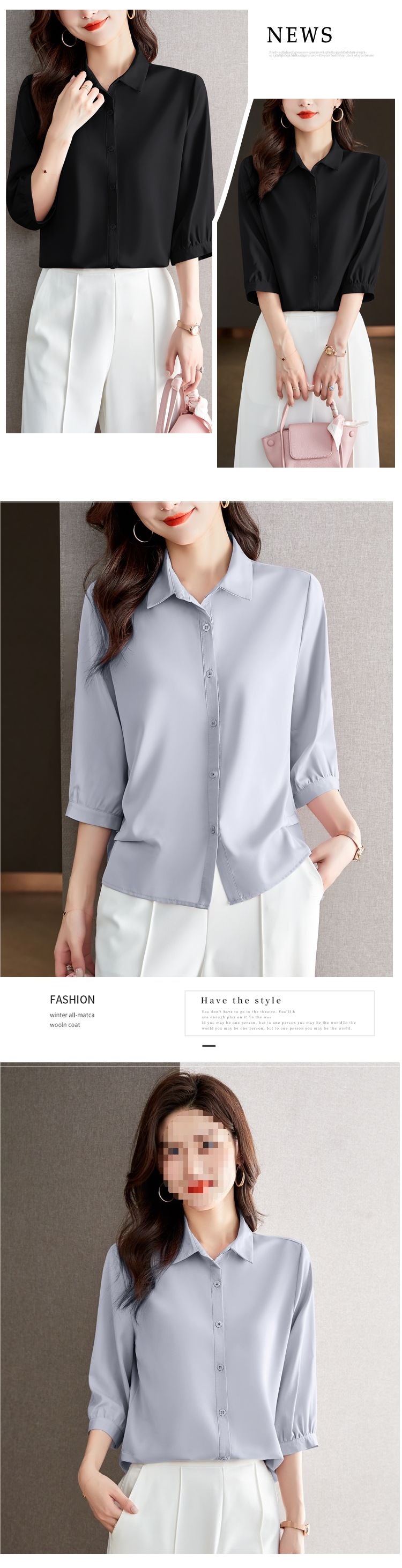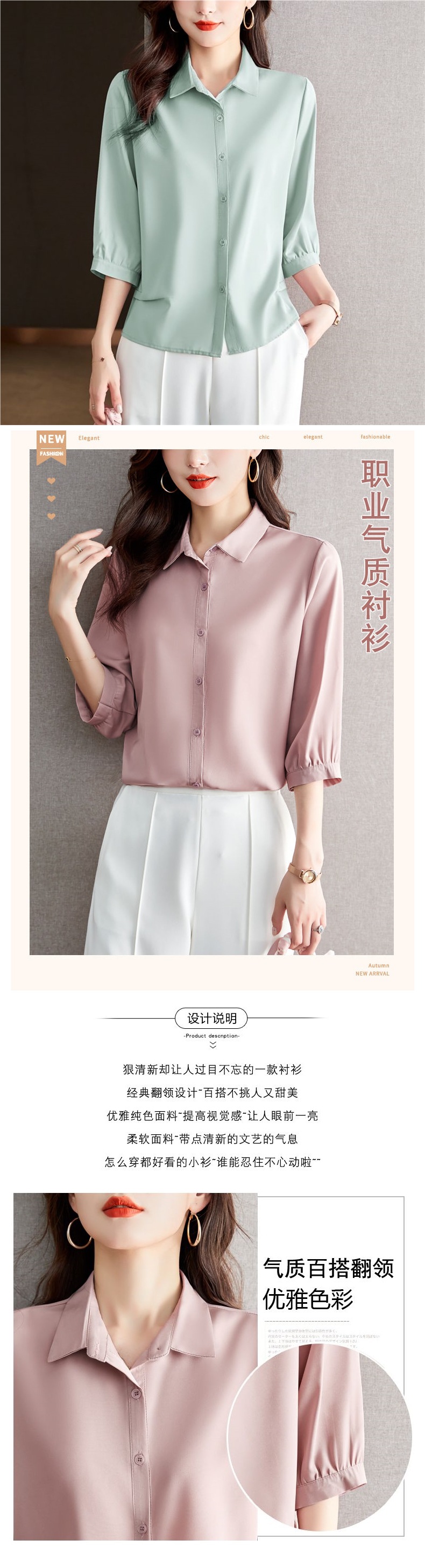 솔리드 컬러 7부 소매 셔츠 여성 가을 새로운 느슨한 옷깃 탑 다목적 슬리밍 패션 기질 쉬폰 셔츠스토어 가기