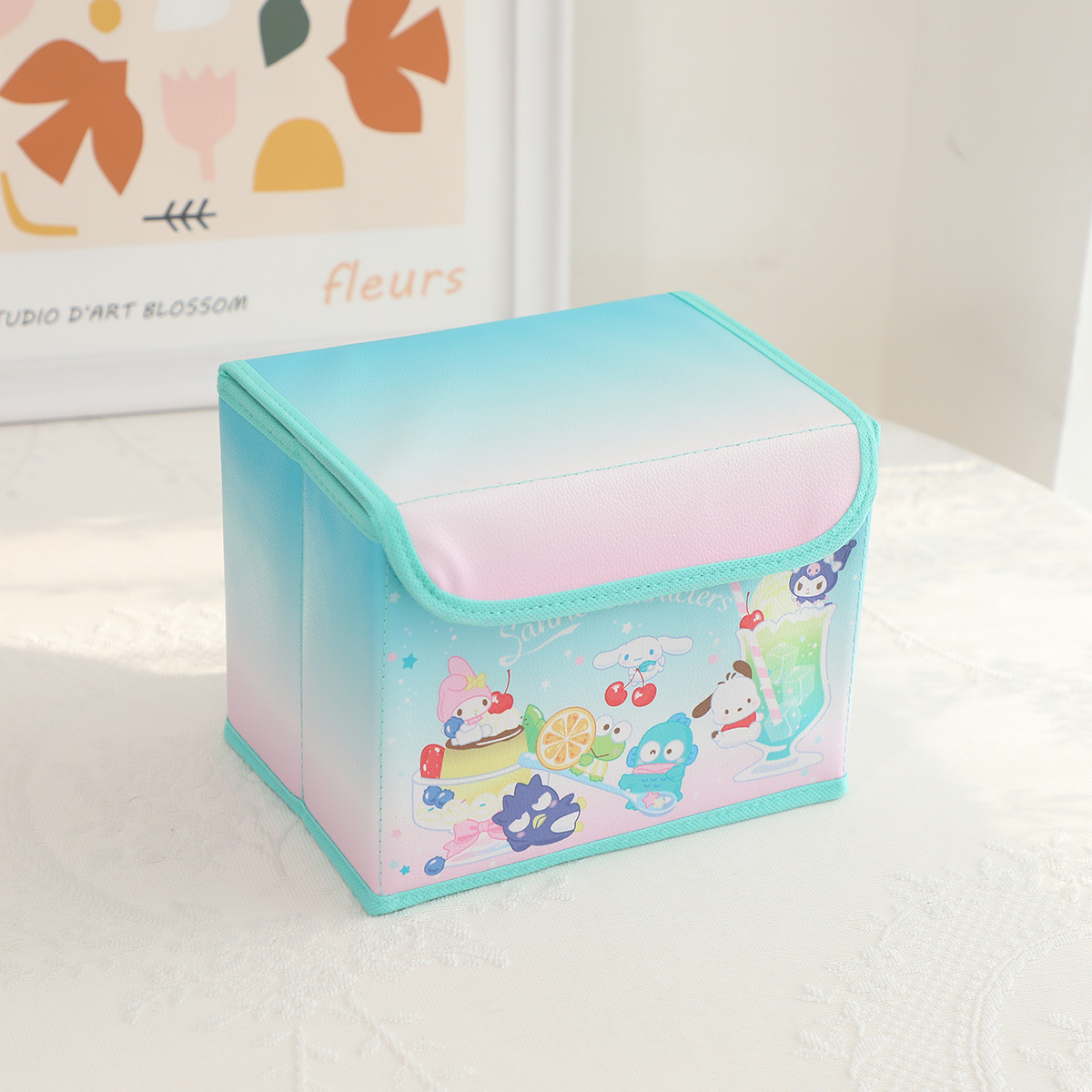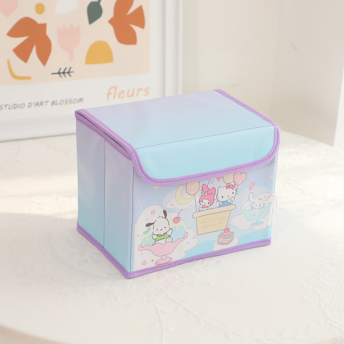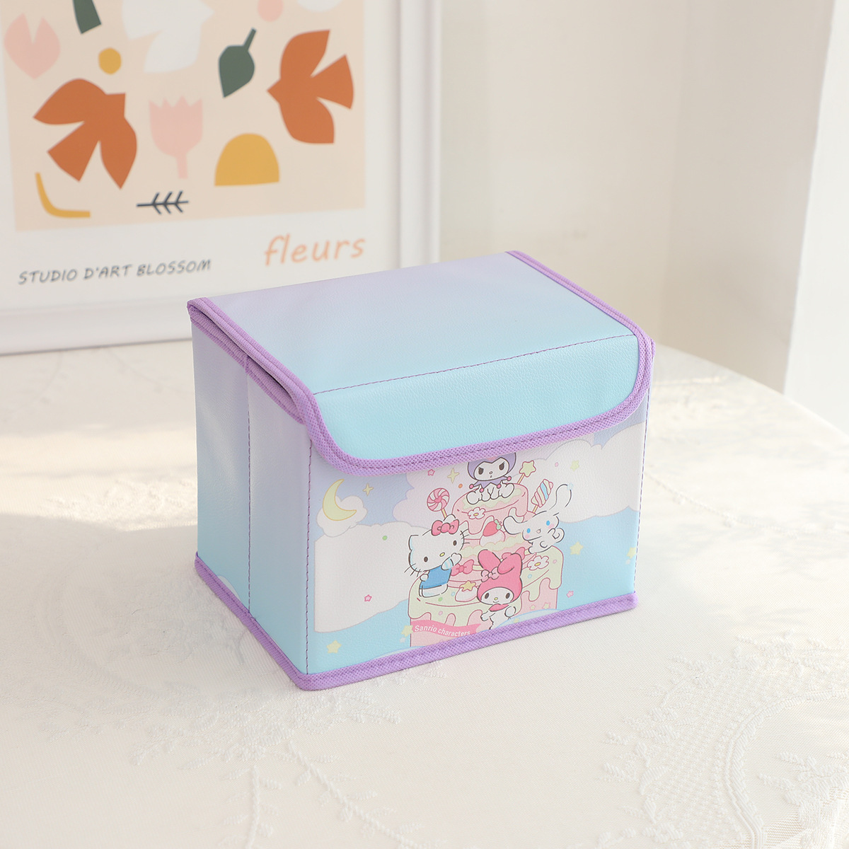 만화 PU 플립 데스크탑 잡화 작은 저장 상자 사무실 침실 옷장 드레싱 테이블 접이식스토어 가기