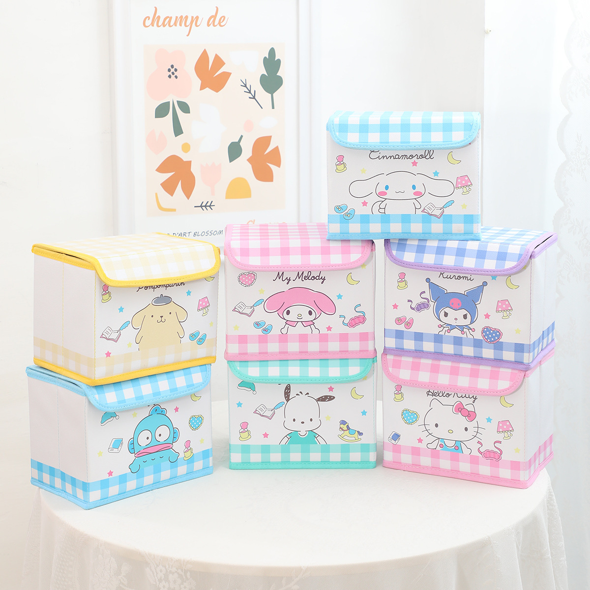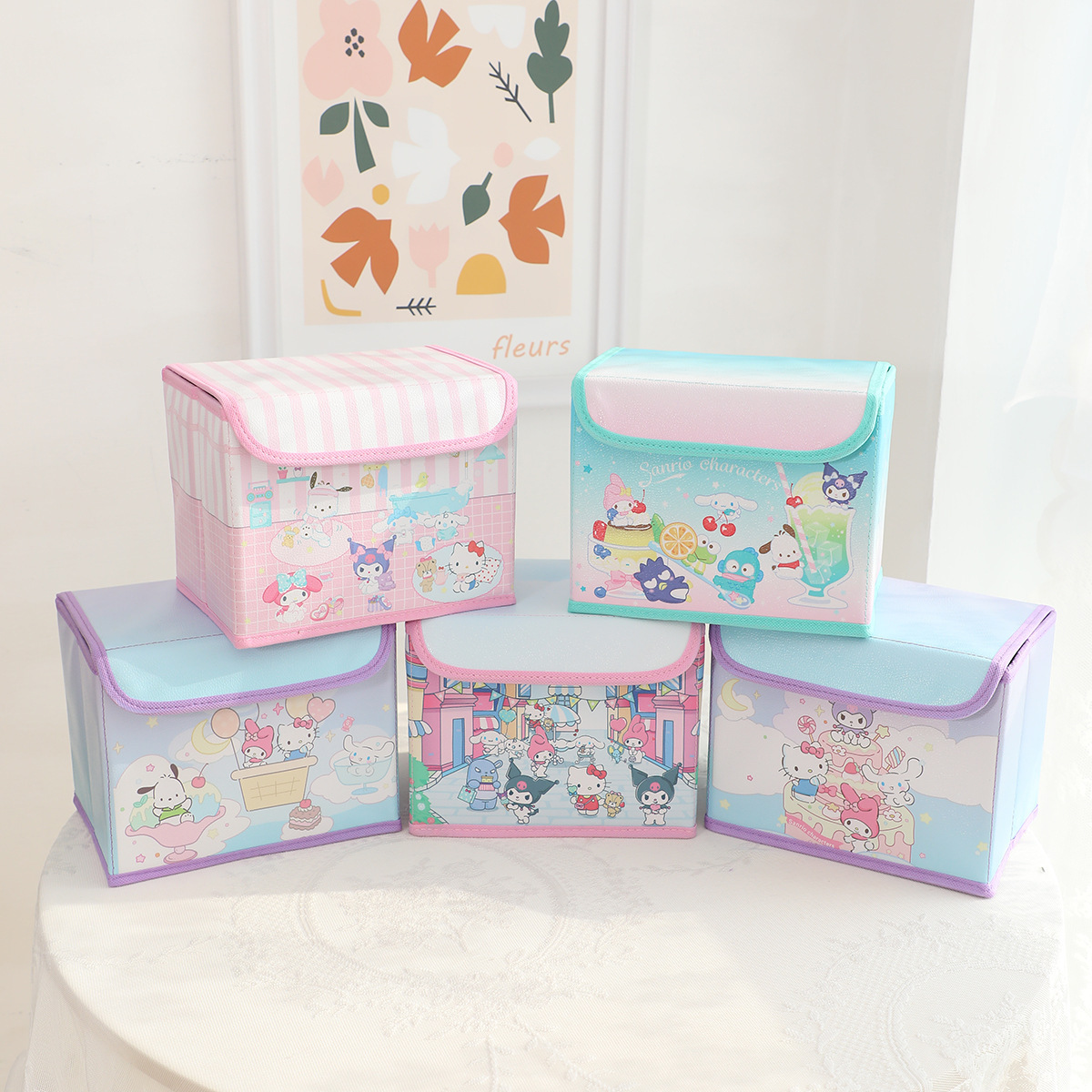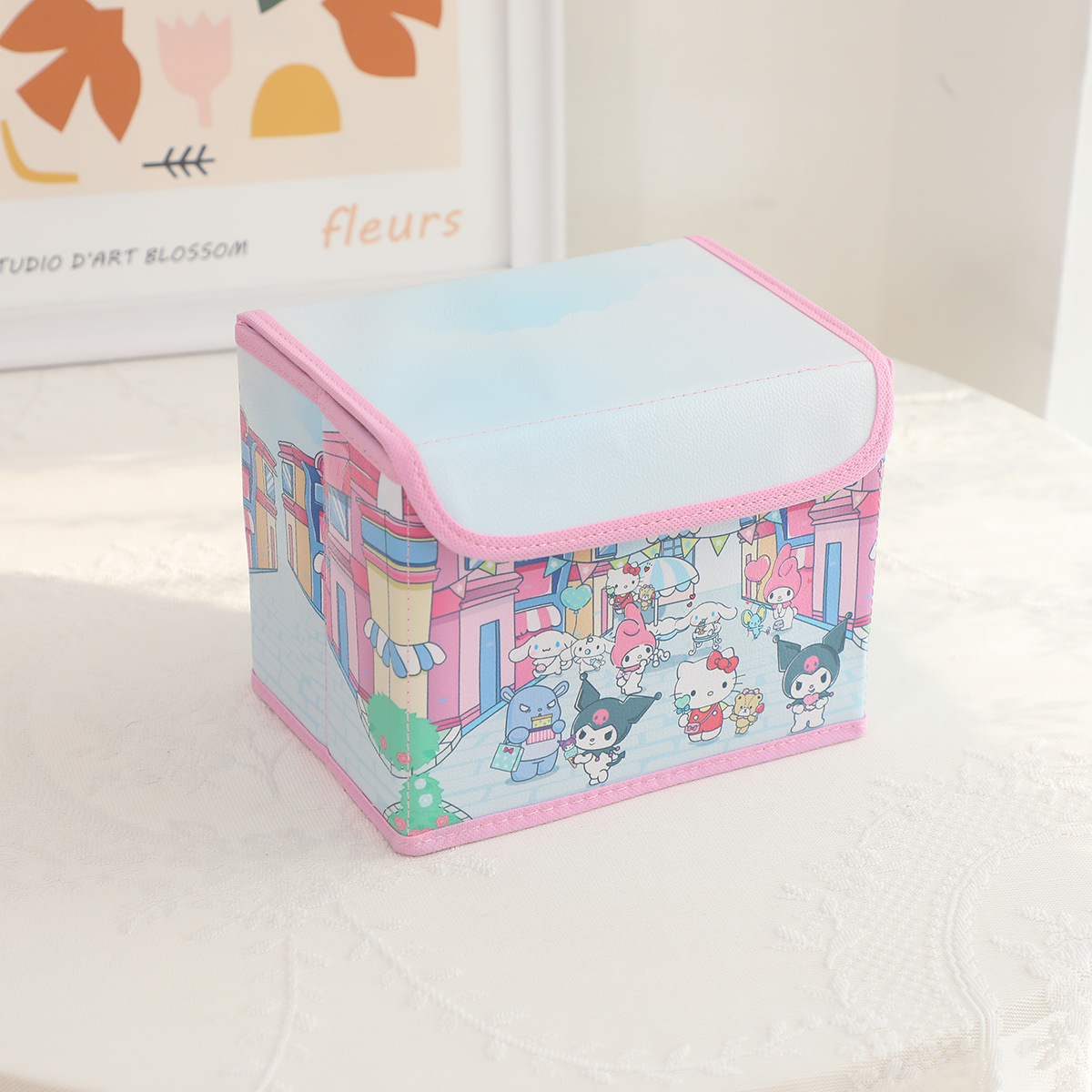 만화 PU 플립 데스크탑 잡화 작은 저장 상자 사무실 침실 옷장 드레싱 테이블 접이식스토어 가기