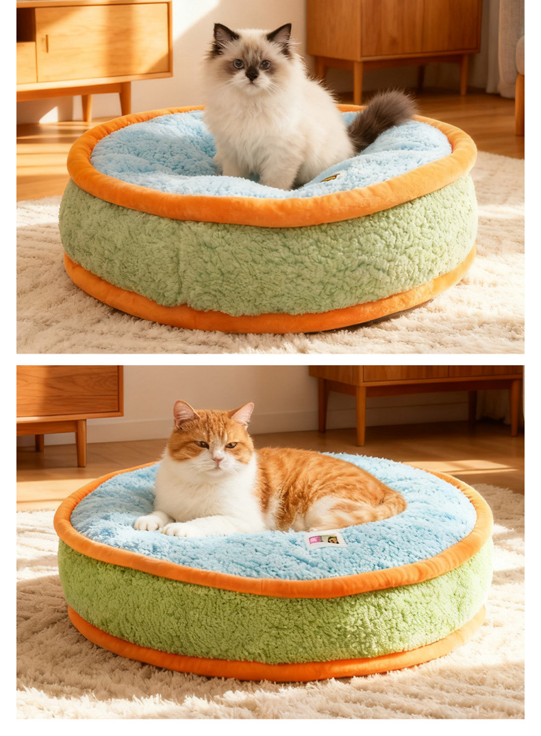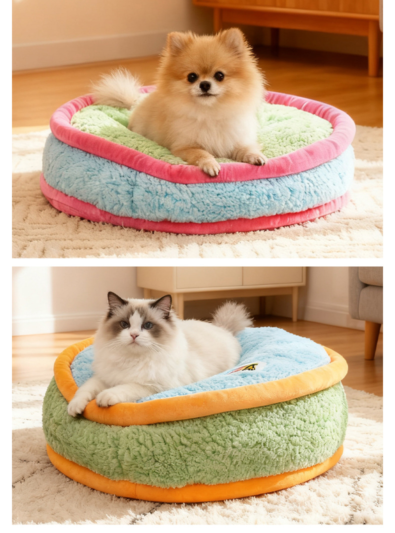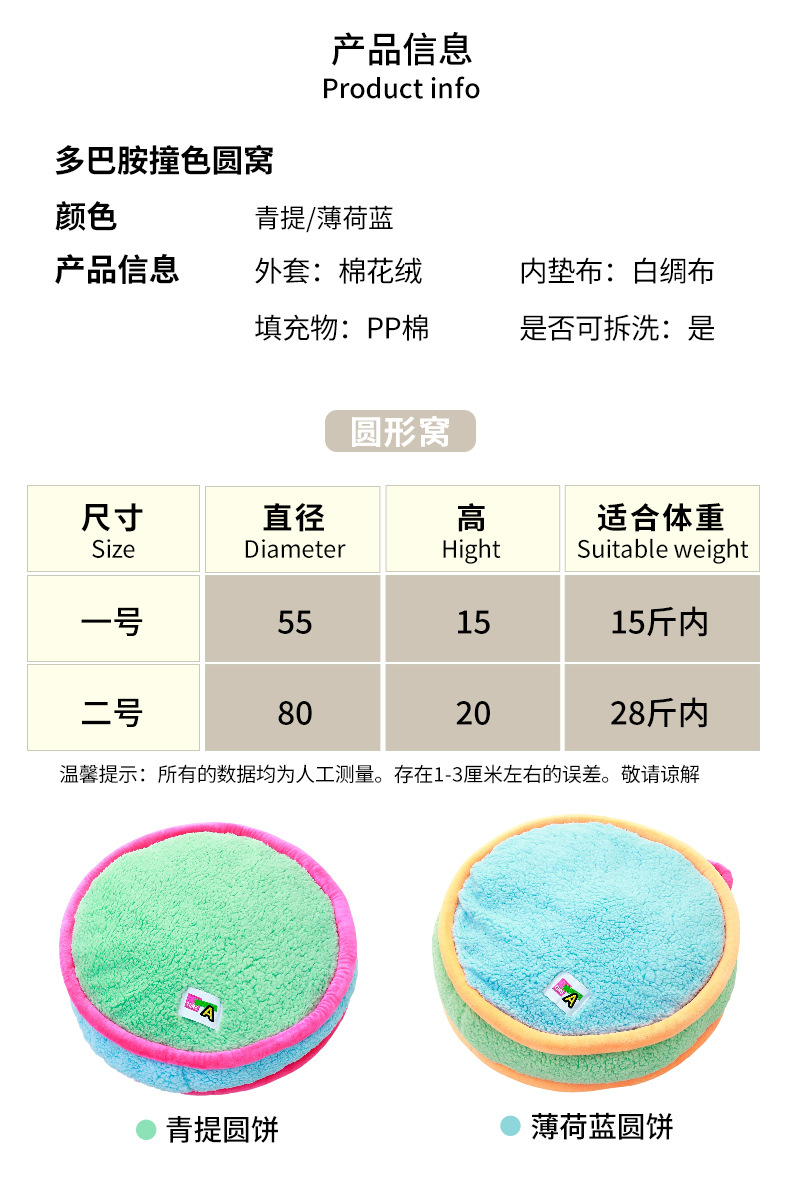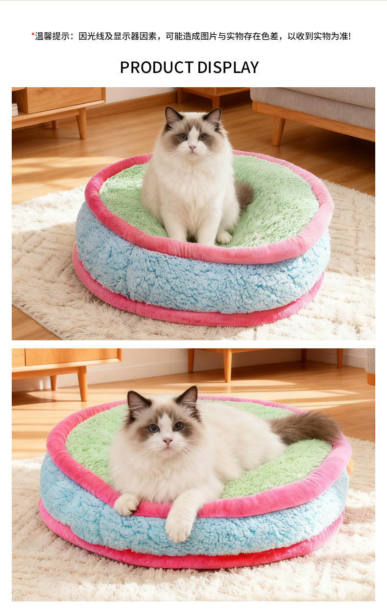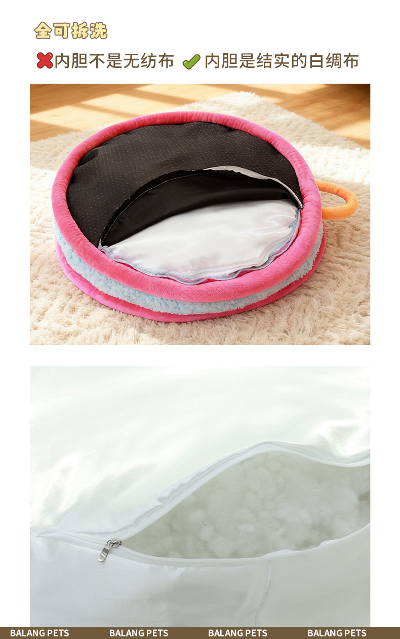 도파민 플러시 개 개집 애완 동물 겨울 따뜻한 개 개집 Bichon 분리형 및 세척 가능한 둥근 개집 애완 동물 매트 공장 도매